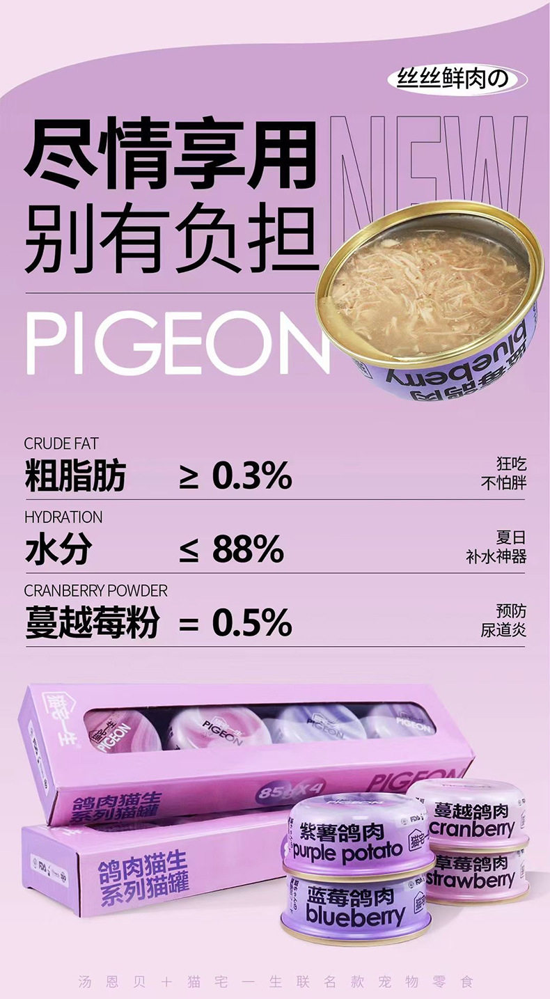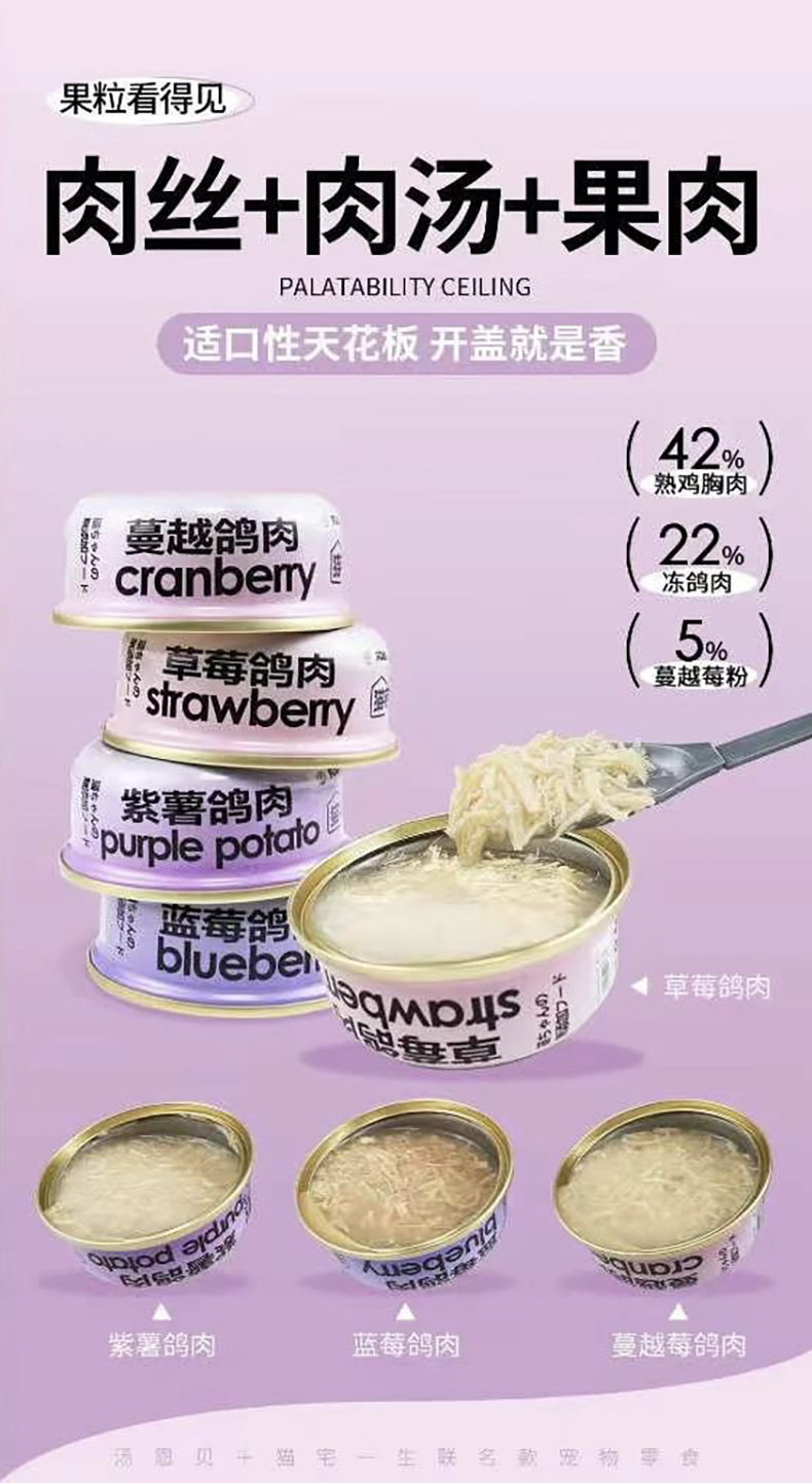 TEB!汤恩贝猫宅一生猫罐头鸽肉猫生蓝莓蔓越莓草莓果肉肉汤罐补水