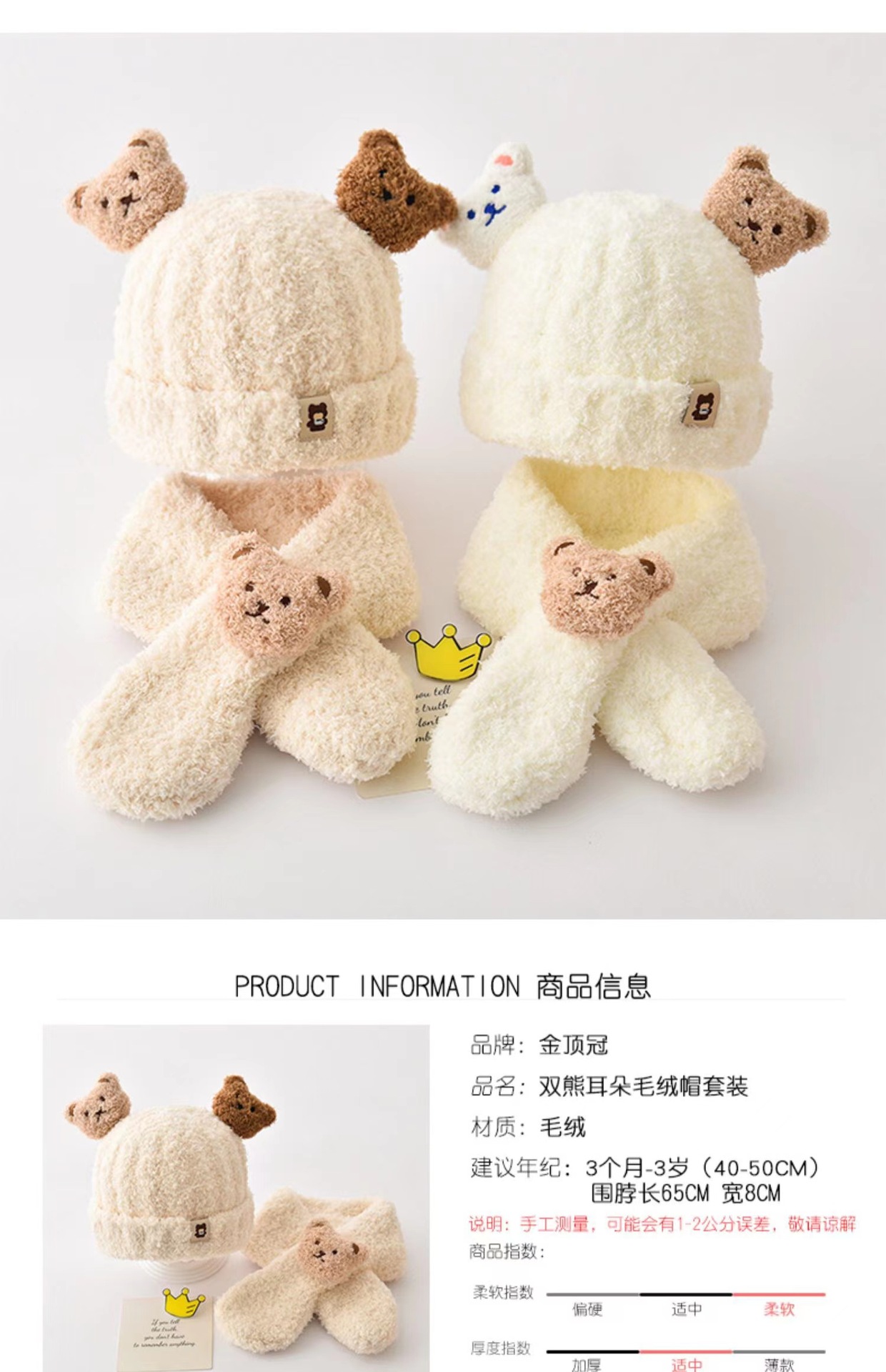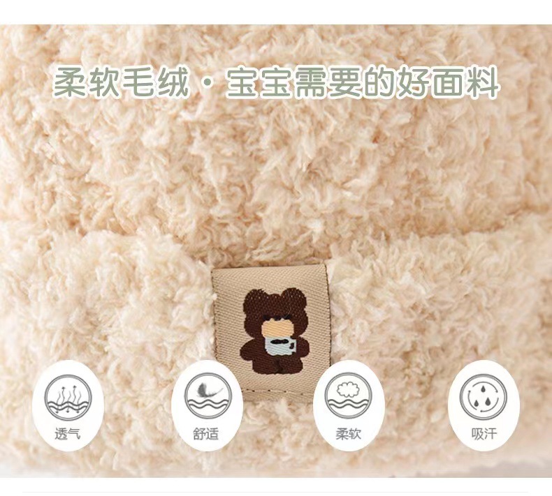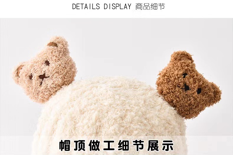 【双熊耳朵毛绒帽子套装】婴儿帽子秋冬季毛绒围巾两件套宝宝男女童小熊可爱保暖加厚幼儿帽