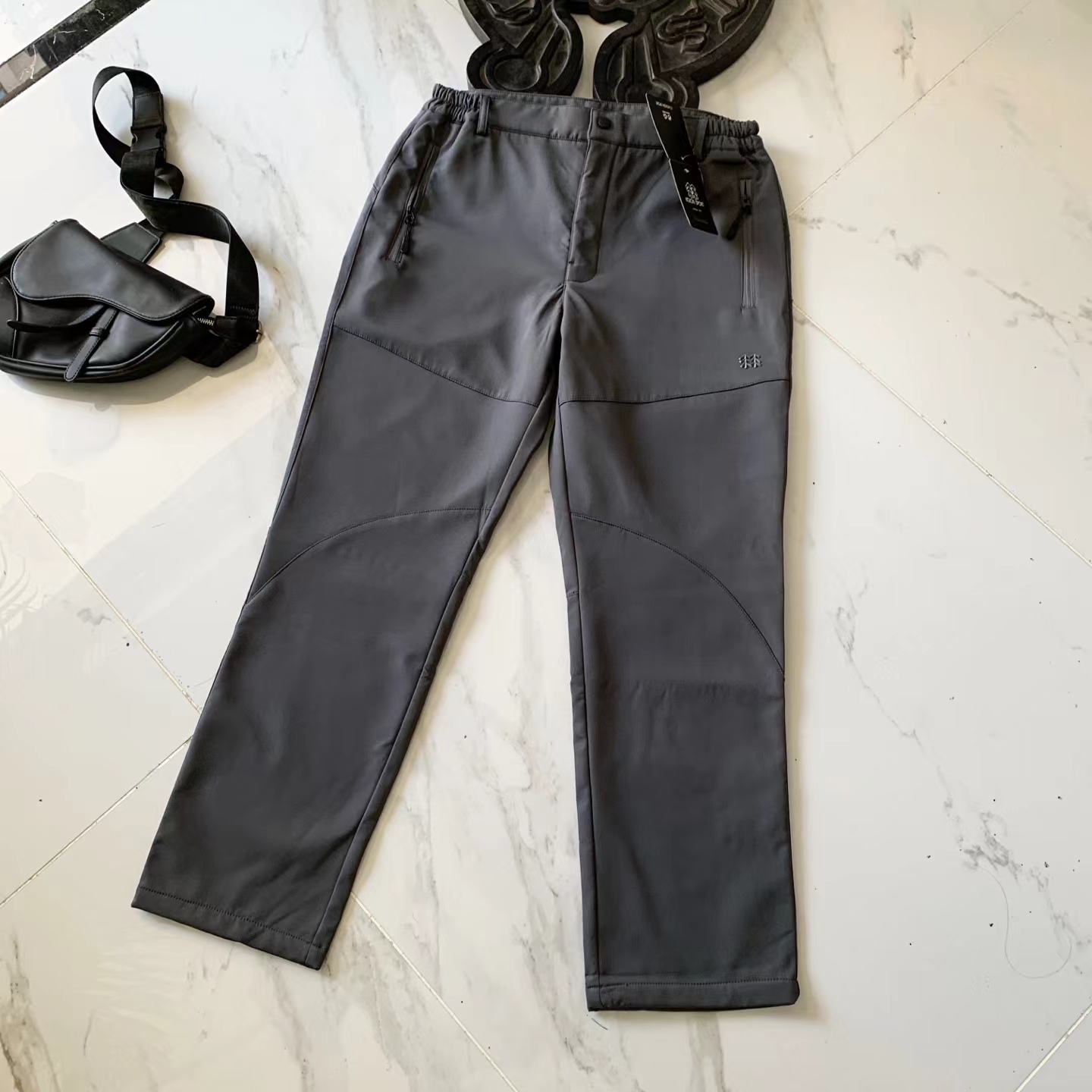 长裤男款户外防雨直筒长裤 运动裤子软壳加绒裤! 不仅户外可穿,城市商务休闲也可搭配!面料采用新型的户外针织类面料的,面料立体有型!纹路清晰!四面微弹,适合任何环境穿着搭配! 既有西装裤的正式感,又有运动裤的舒适感,上身效果特别有型,3D立体剪裁拼接的锥形裤裤型,腰部独特的拼接式松紧腰设计,让裤型平整有型,内置抽绳!穿着舒适更不会下滑,给你十足的安全感!裤子两侧隐形式拉链(YKK拉链)口袋拉链设计,安全性极高。口袋下面印有立体的常青树logo,jing致满满!细节满分!品质保证!