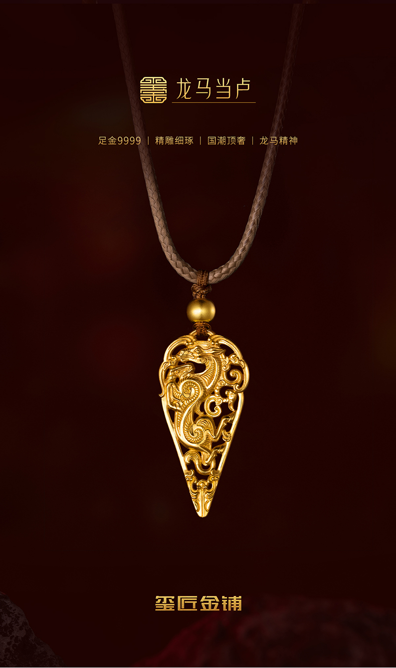 玺匠金铺《龙马当卢》足金9999 黄金吊坠项链新年礼物
