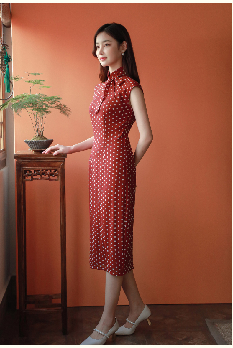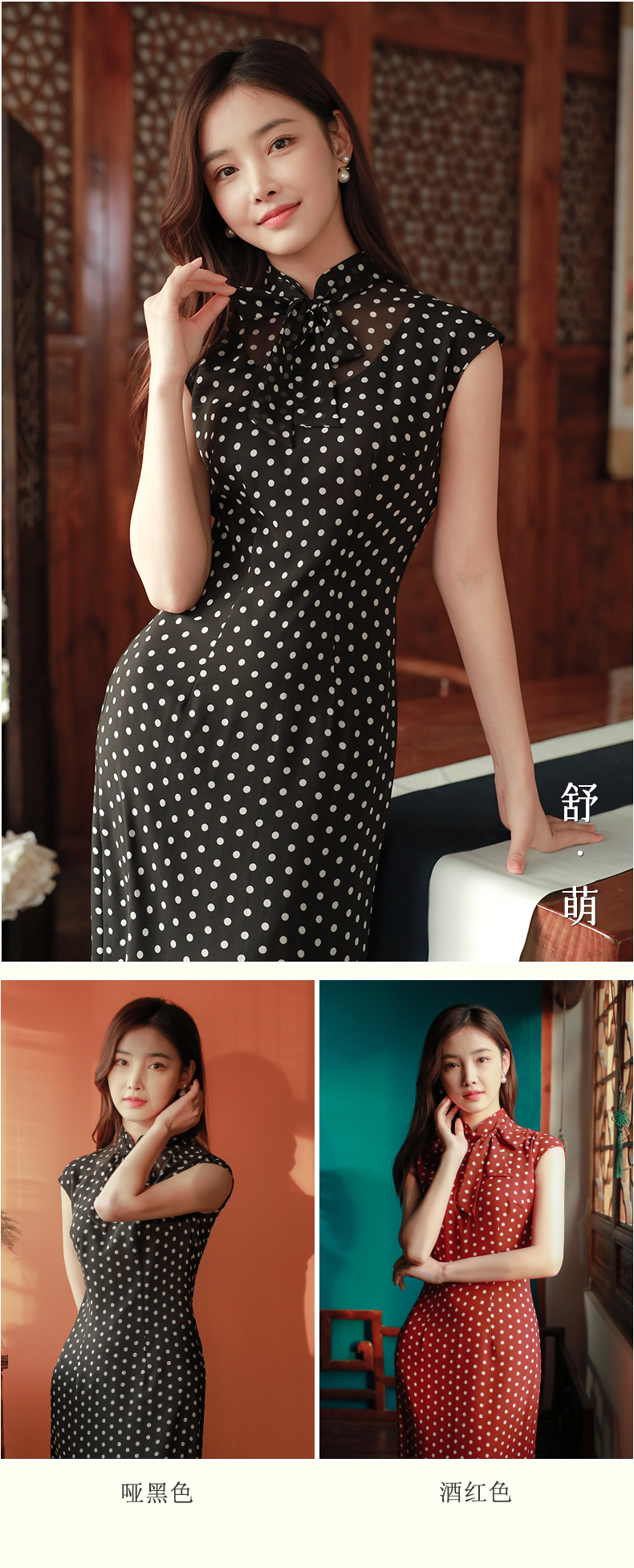 2025年古法红黑色女小个子设计感小众日常长款改良版旗袍舒萌