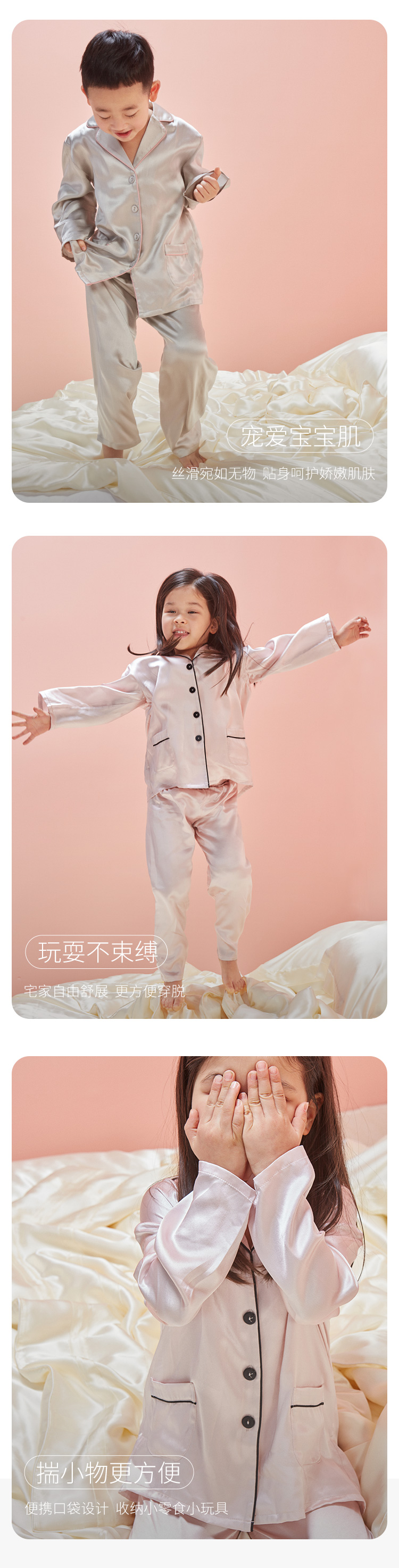 可爱灵气真丝睡衣套装SANGLUO桑罗舒适儿童桑蚕丝家居服童装