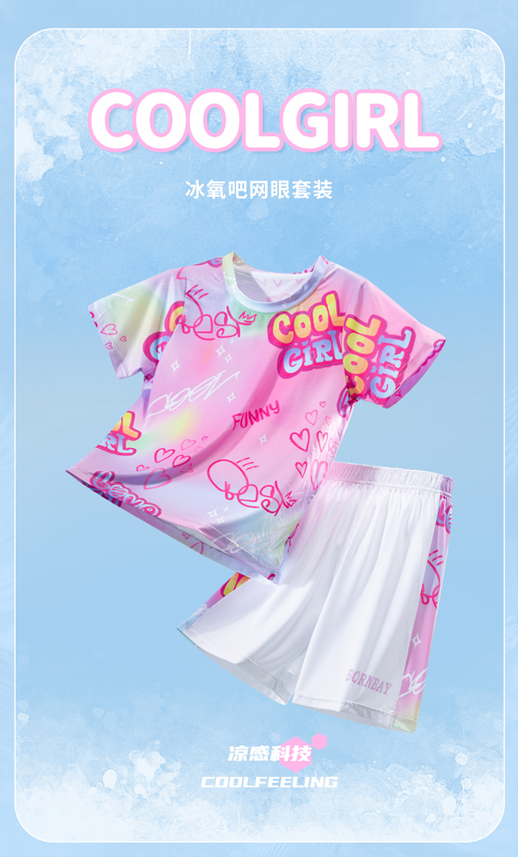 贝贝怡夏季新款女童冰感速干透气短袖T恤短裤运动套装