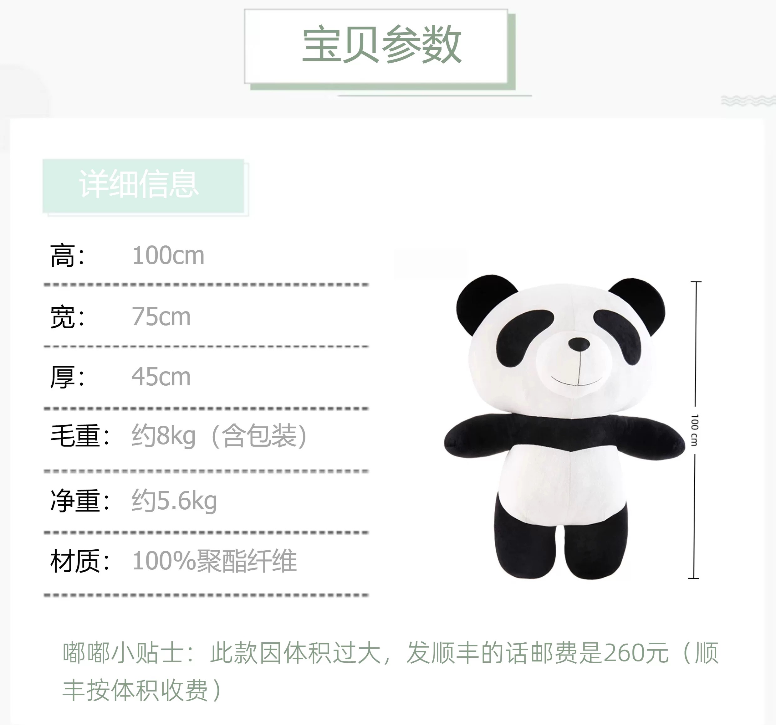 【限时5折】1米特大号 大熊猫毛绒公仔 节日礼物