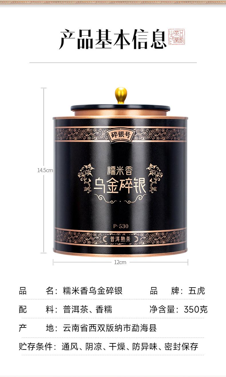 茶叶 碎银子 5年普洱熟茶 糯米香 乌金碎银 茶饮 五虎 350g