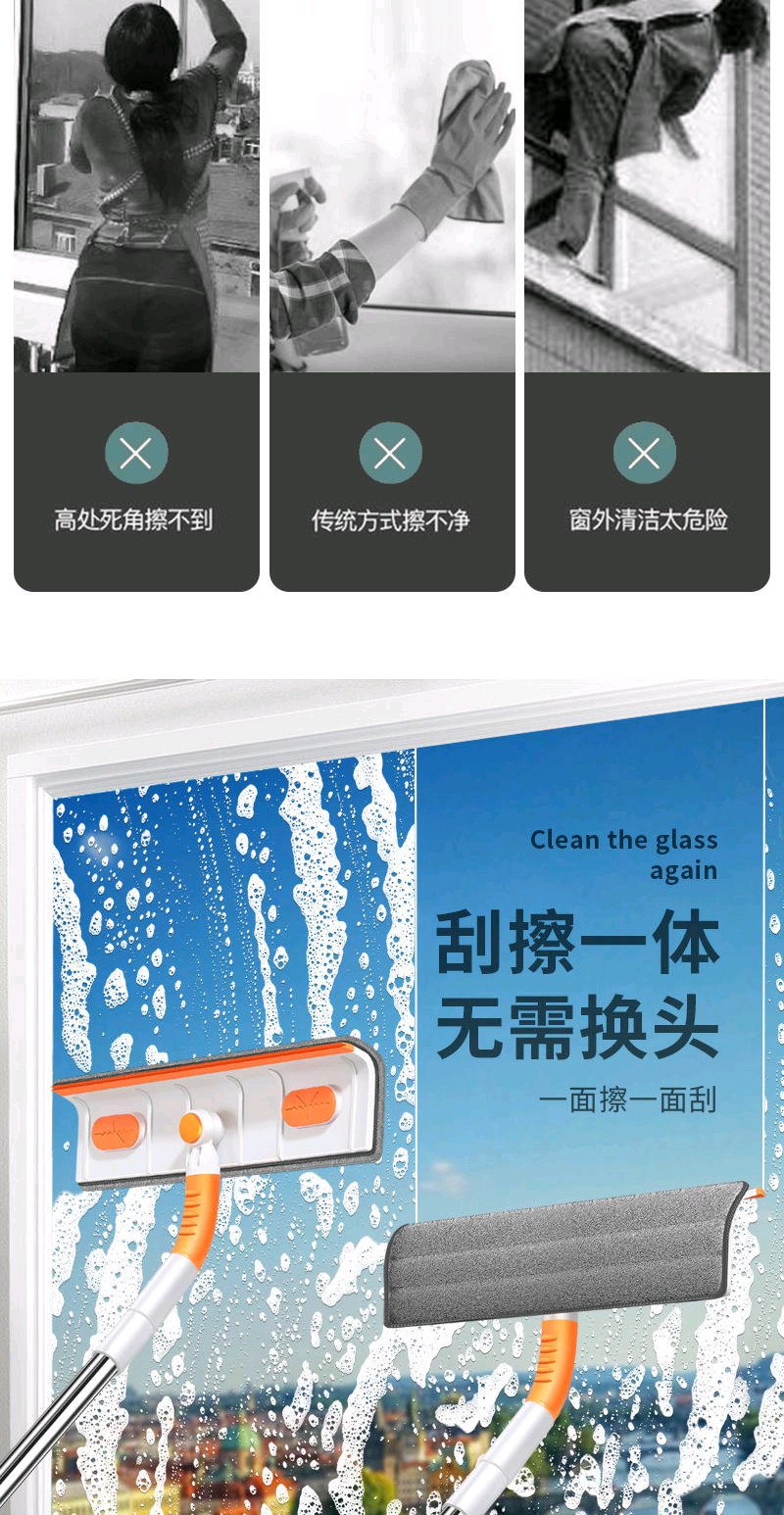 【两用】擦玻璃神器玻璃窗一体硅胶伸缩双面擦擦神器可弯曲双层
