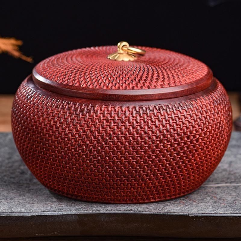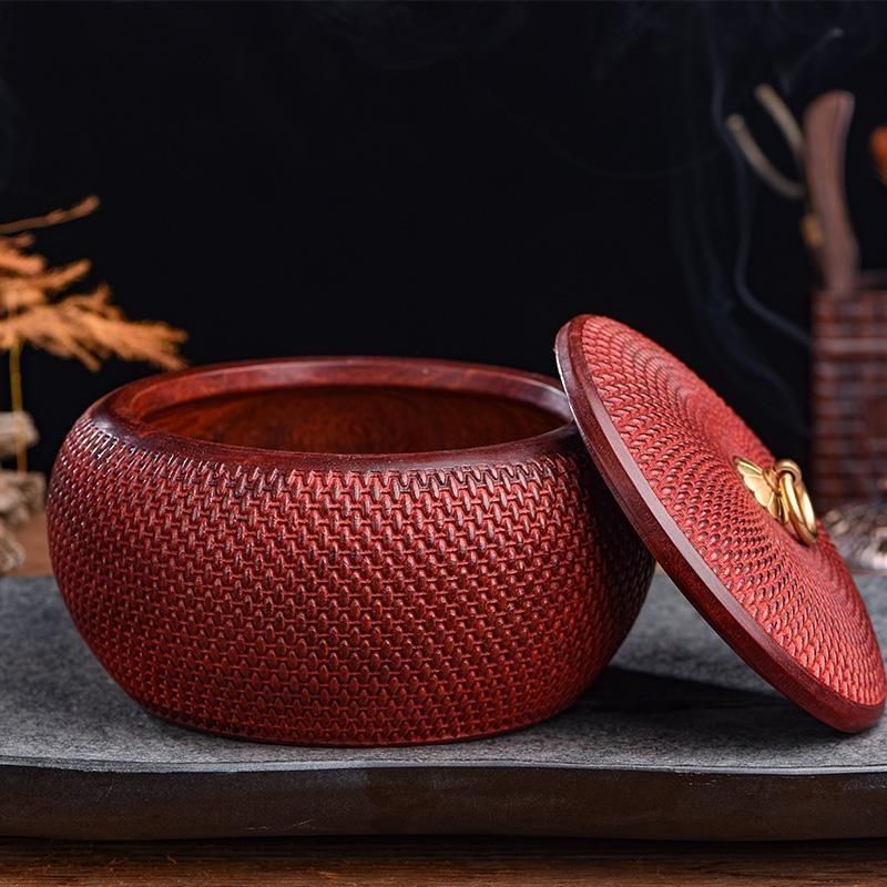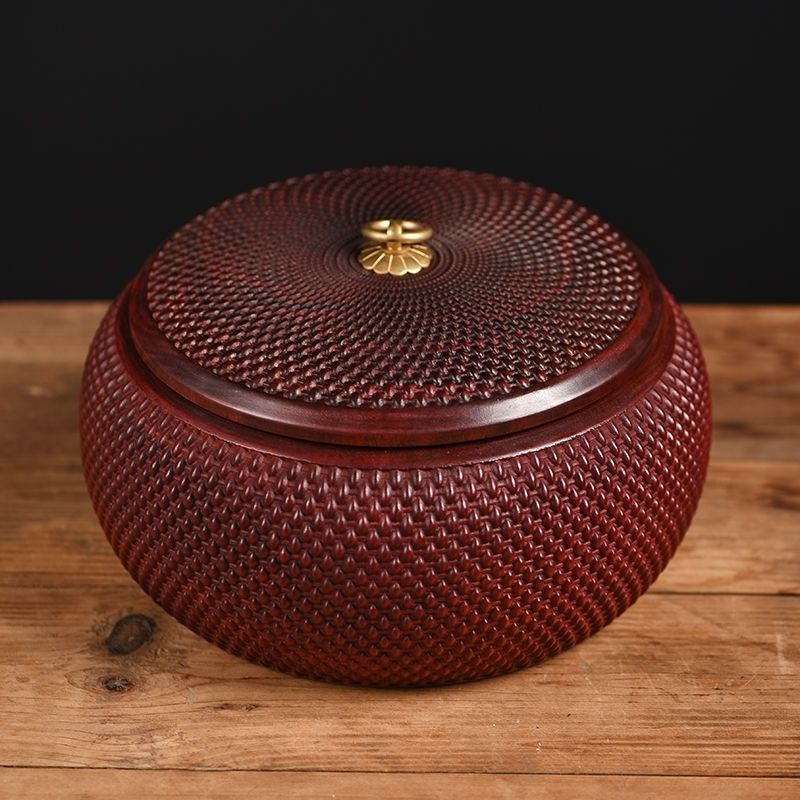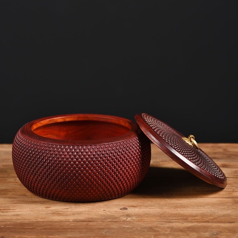 檀实木制密封罐围棋罐储茶罐实木茶道茶叶罐红木茶室摆件