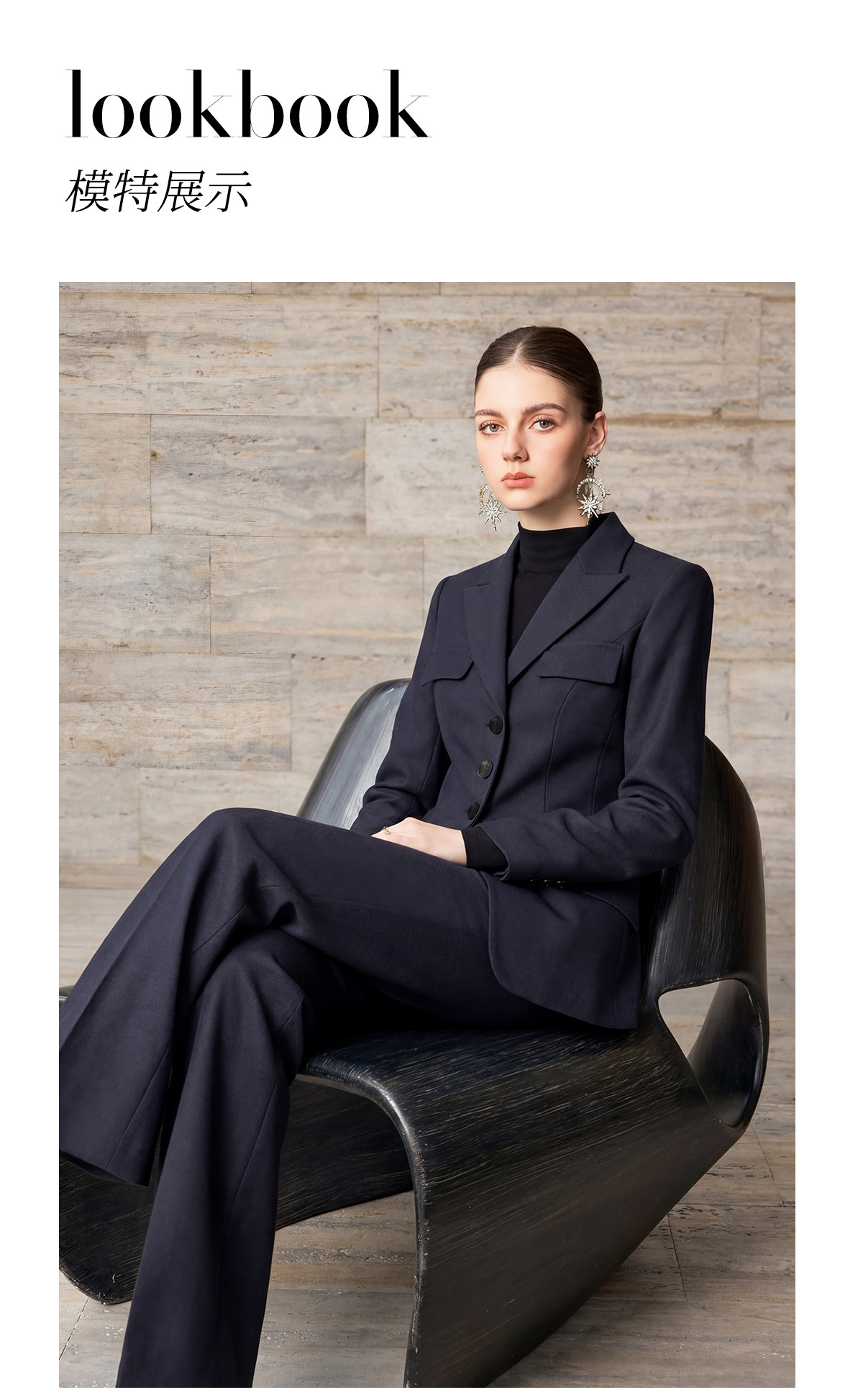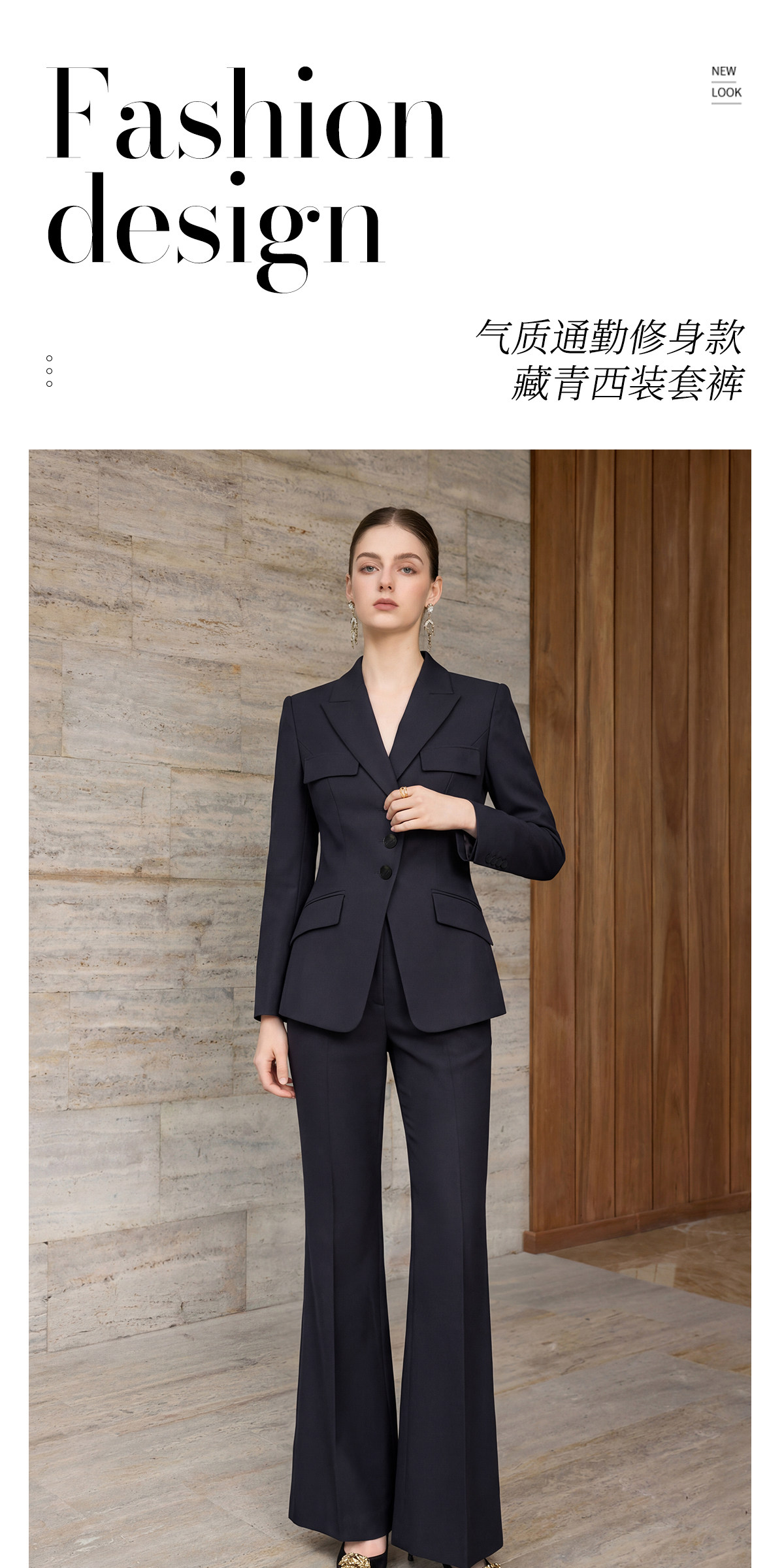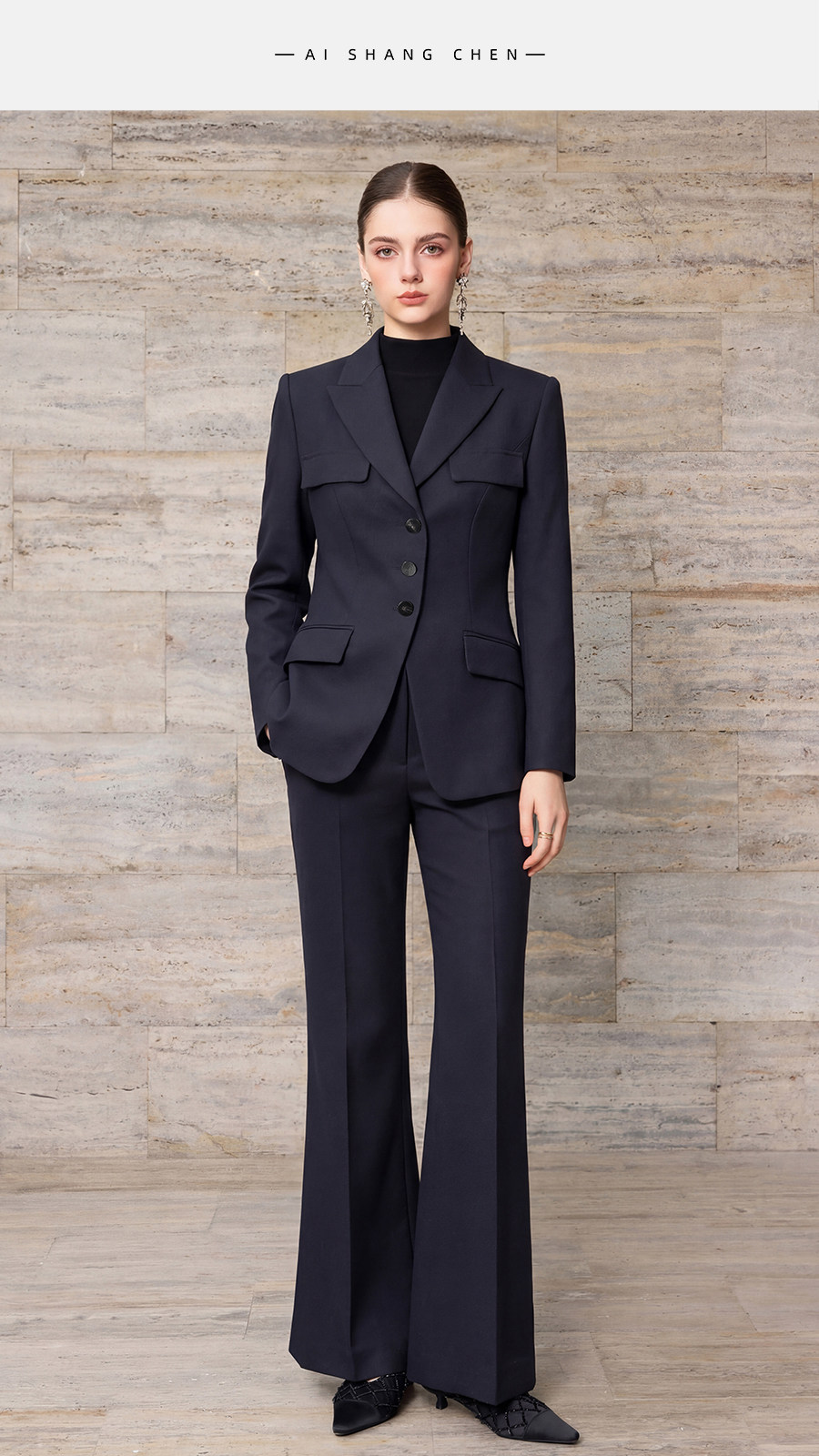 艾尚臣商务风职业装女新款藏青色西装优雅气质高级感西服两件套春
