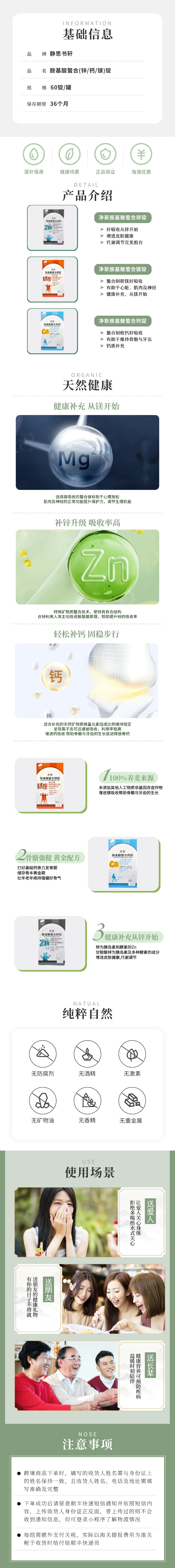 【静思书轩】淨斯胺基酸螯合锌镁钙各一盒 台湾直邮不包税 以实际为准 单笔不超过350元人民币