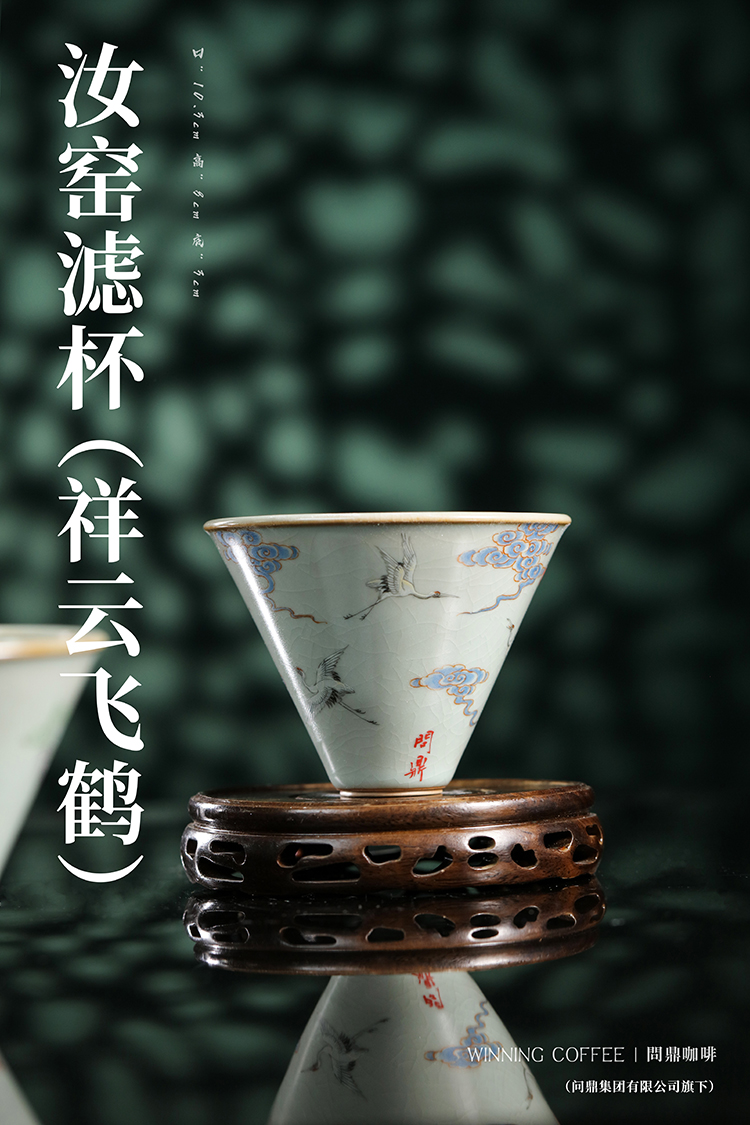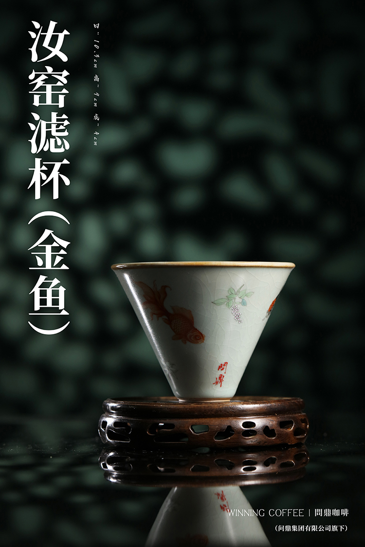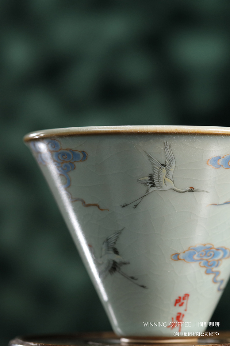 问鼎咖啡天青釉带竖条滤杯 (金鱼) (祥云飞鹤)