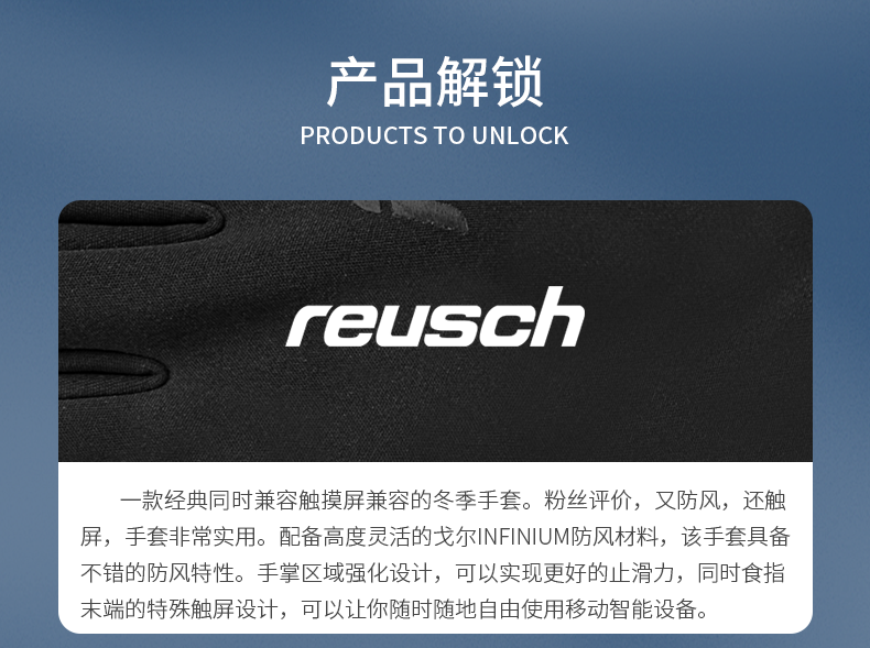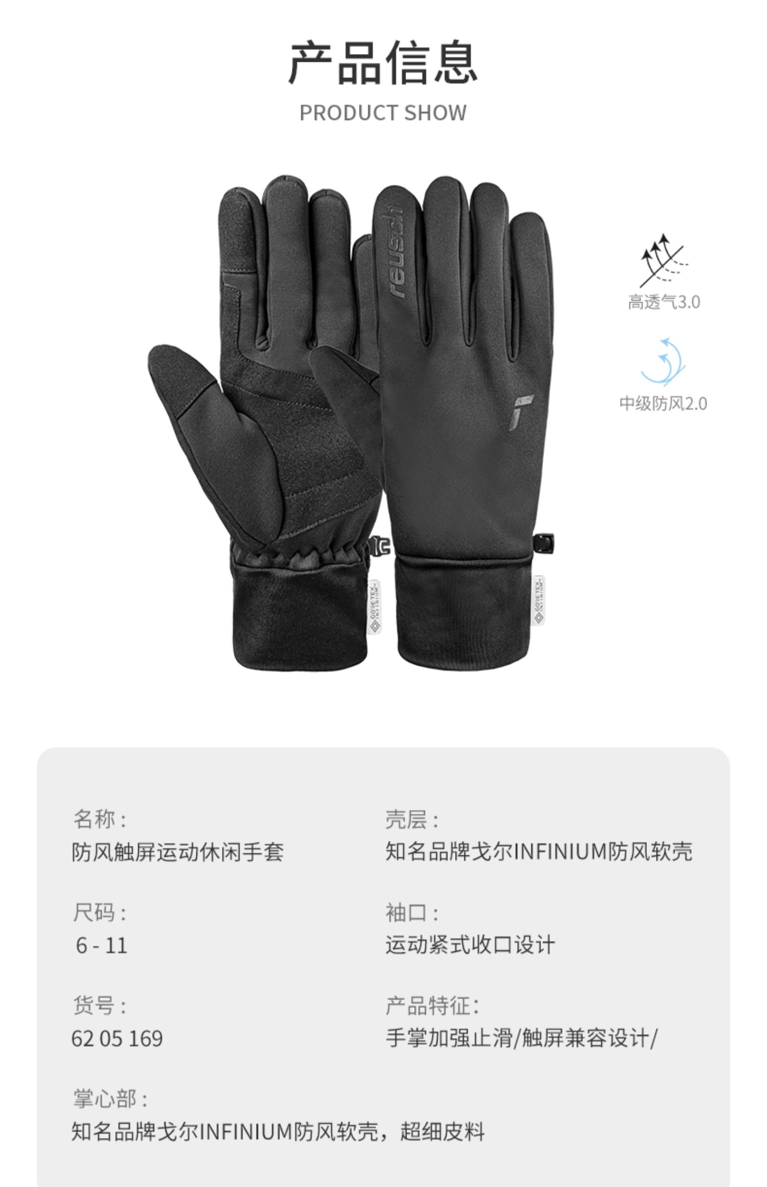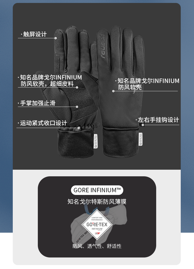 Reusch炫驰秋冬新品GTX薄膜防风触屏软壳休闲滑雪手套6205169