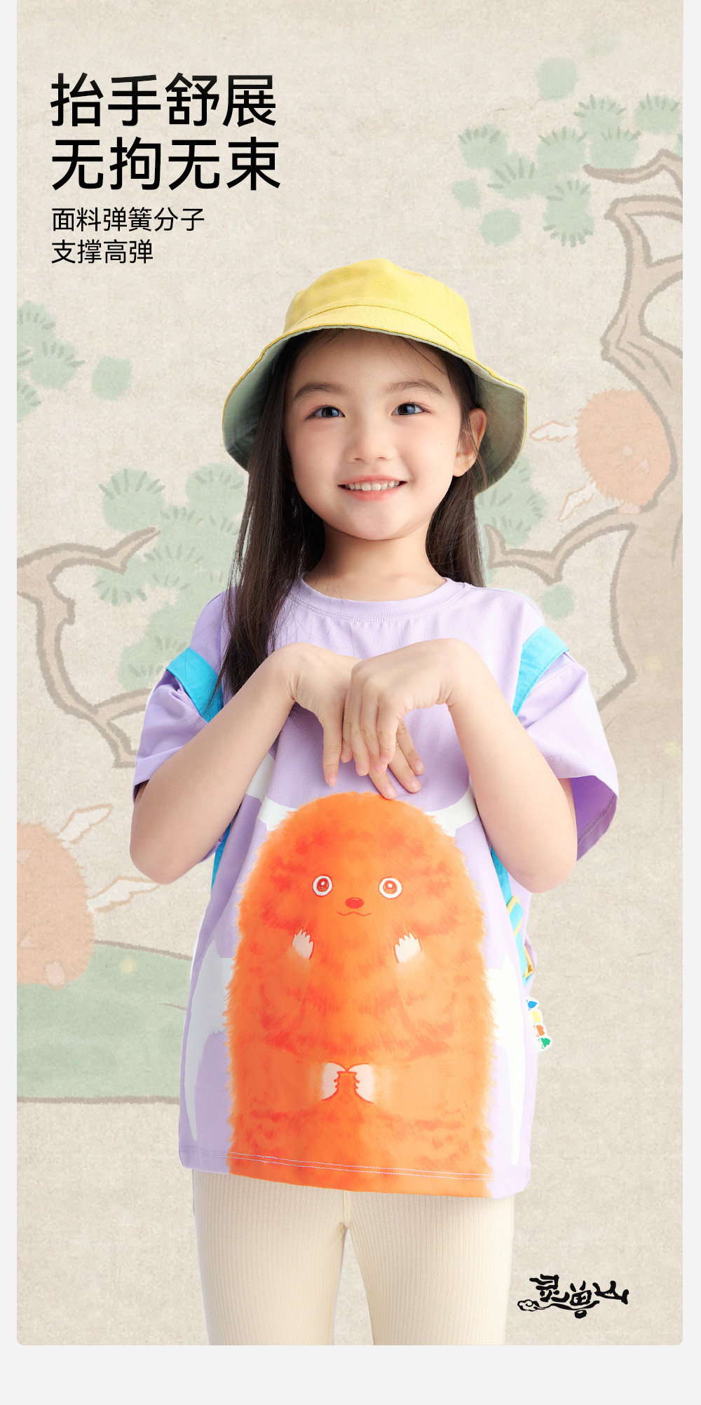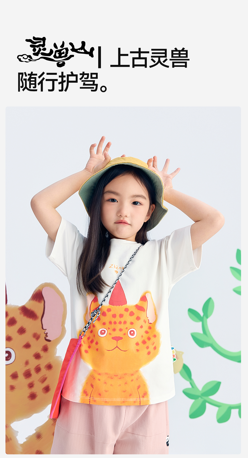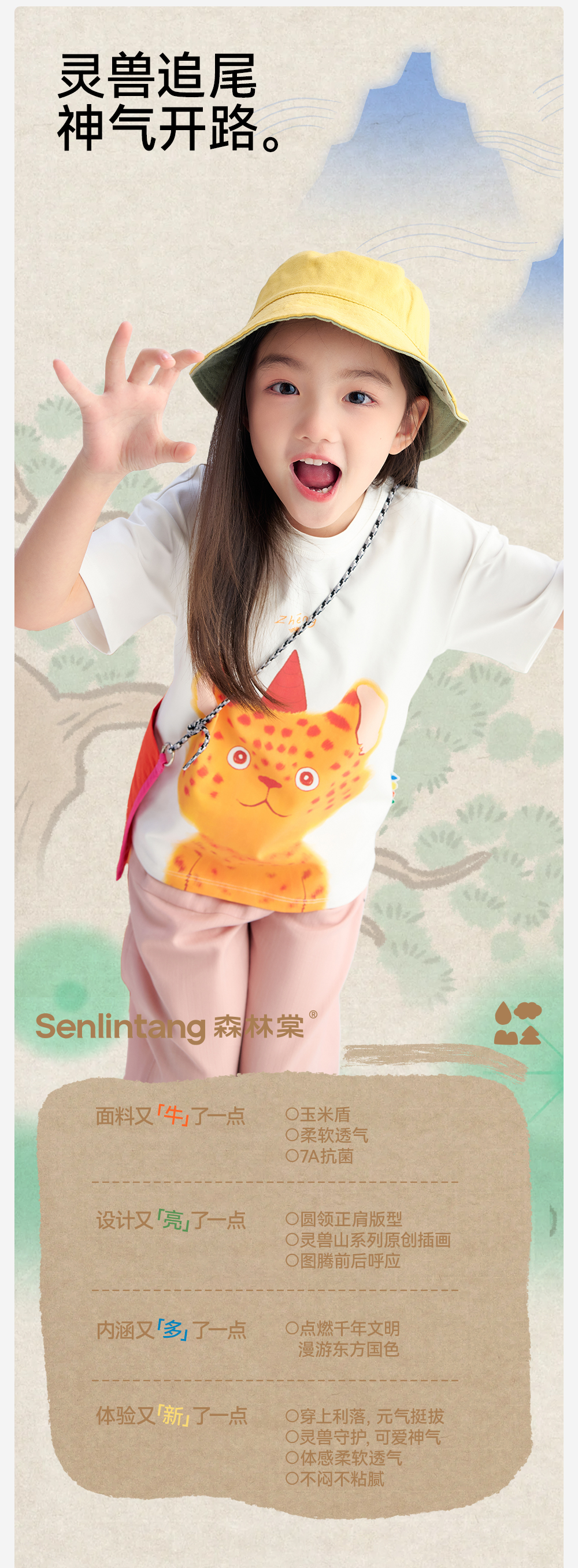 【儿童原创插画短袖T恤】森林棠26夏款玉米盾亲肤柔软透气印花T恤40162510