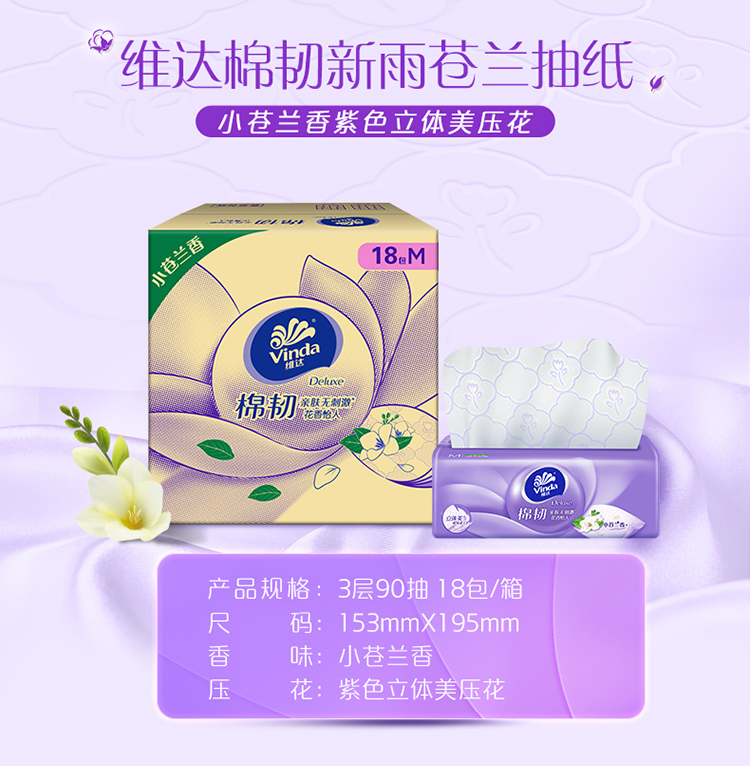 维达抽纸棉韧M码18包整箱立体美纸巾家庭家用实惠装餐巾面巾纸卫生