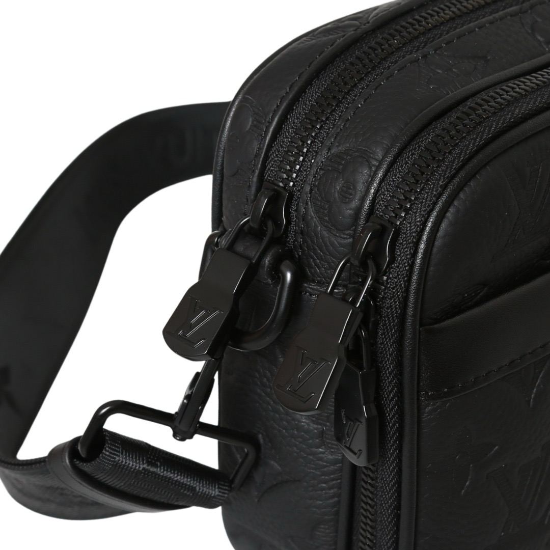 同色系饰边金属件拉链开合可拆卸可调节肩带 牛皮 斜挎包 迷你 男款 黑色!黑巧方盒」斜挎包:把高级感揣在肩侧!当经典 Monogram 压纹裹上哑光黑皮革,这款小方包像块冷调黑巧 —— 低调里藏着细腻的质感,拿在手里是自带分量的精致。方正包型利落又能装:主仓能塞下手机、卡包 + 口红,前袋随手揣耳机,日常出门的零碎都能妥帖安置。拉链 + 翻盖的双重设计,安全感和仪式感都给足,铜色五金扣是暗夜里的微光,衬得黑皮更显冷冽高级。可调节肩带太懂通勤人:斜挎是松弛的随性感,缩短成腋下包又多了几分精致,搭西装是职场利落感,配卫衣则是慵懒潮酷风。它是那种 “不用费心搭配” 的万能款,黑调的克制里藏着细节的巧思,往肩上一搭,就成了 outfits 里的质感注脚 —— 是日常里能拎得出手的 “低调贵气”。