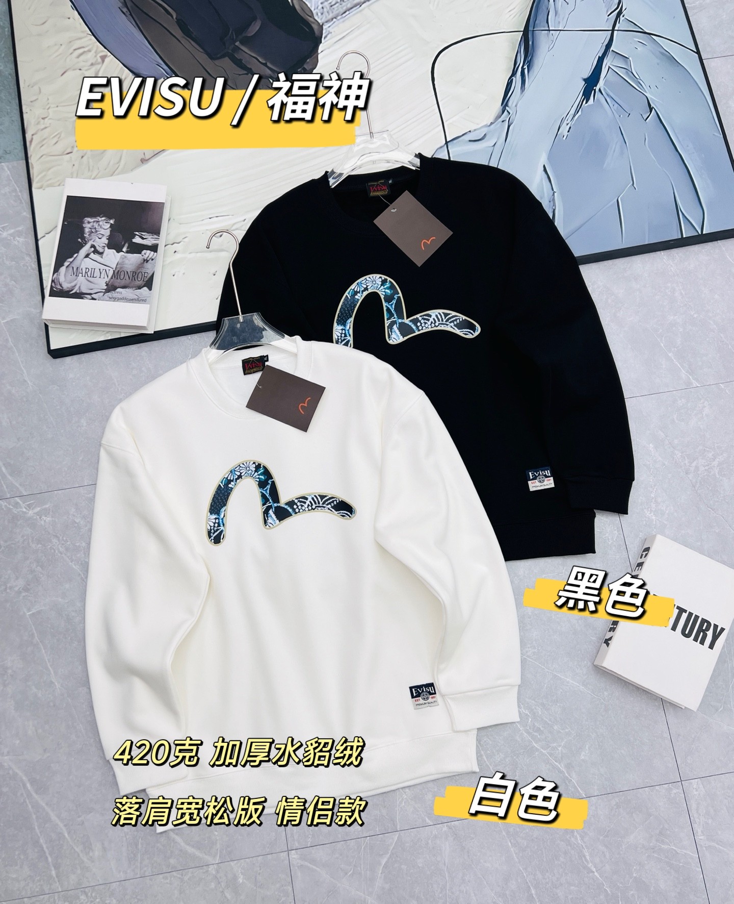 EVISU福神代购冬季新款加绒卫衣,超厚实水貂绒,寒冬打底B备 高端不简单!