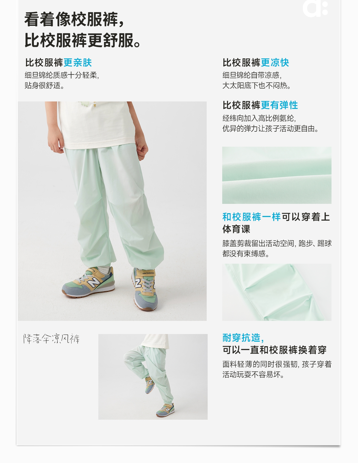 【春季特惠】幼岚降落伞「凉风裤」凉感亲肤易打理24春新款耐磨抗造儿童校服裤ZY