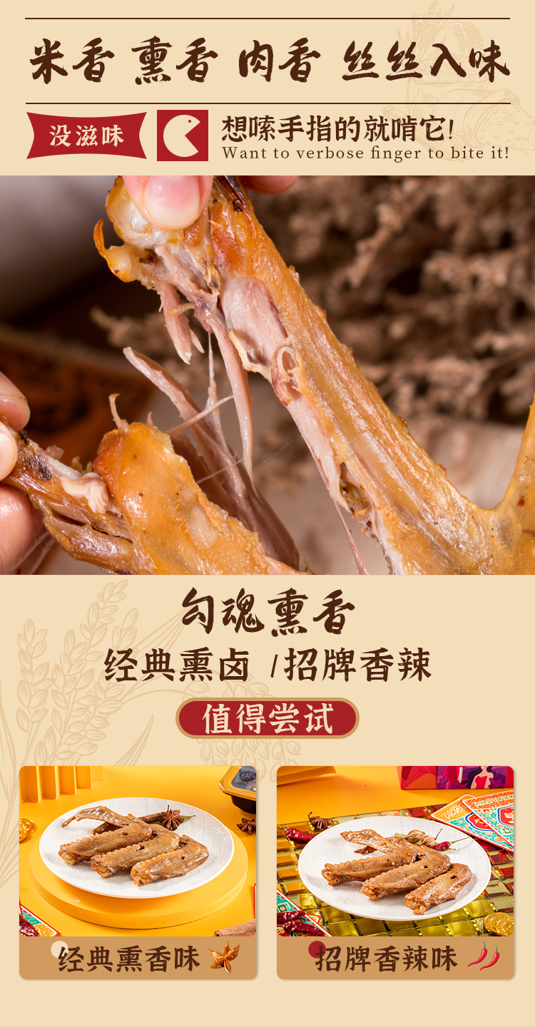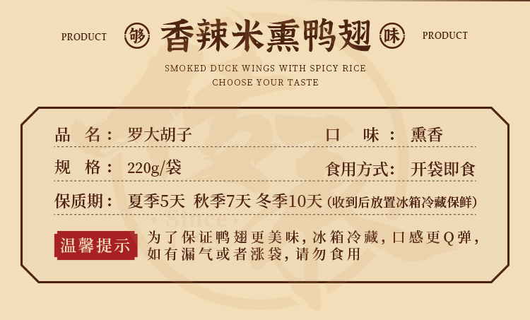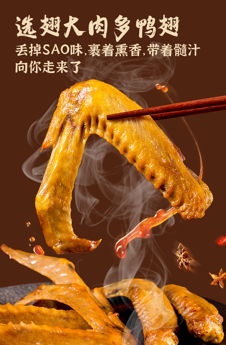 【招牌熏味】罗大胡子简装熏鸭翅/特产小吃零食6支装