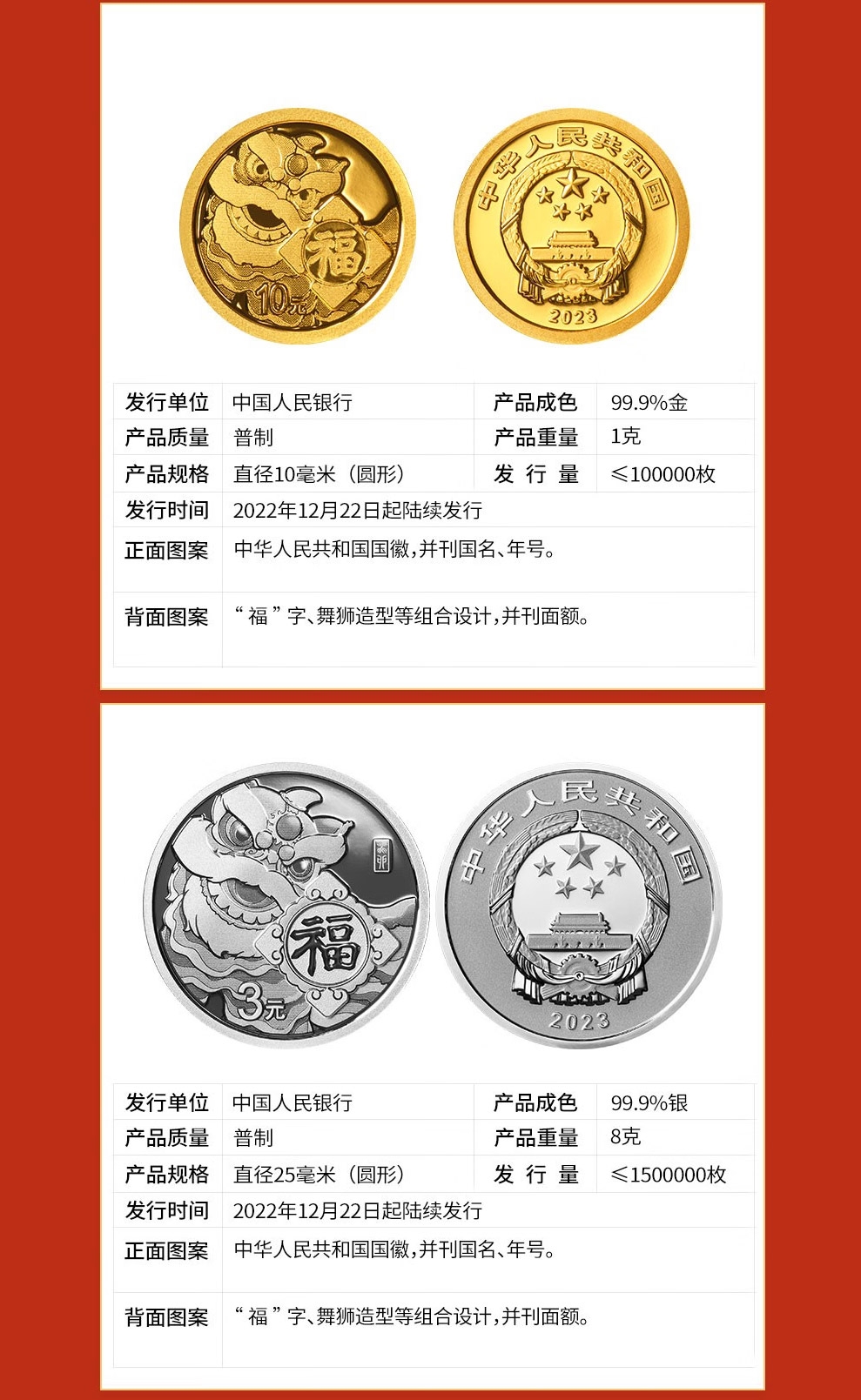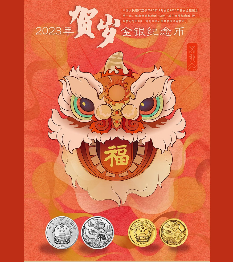河南中钱 中国金币 2023年贺岁金银纪念币 2023年福字金银币 贺岁福字币