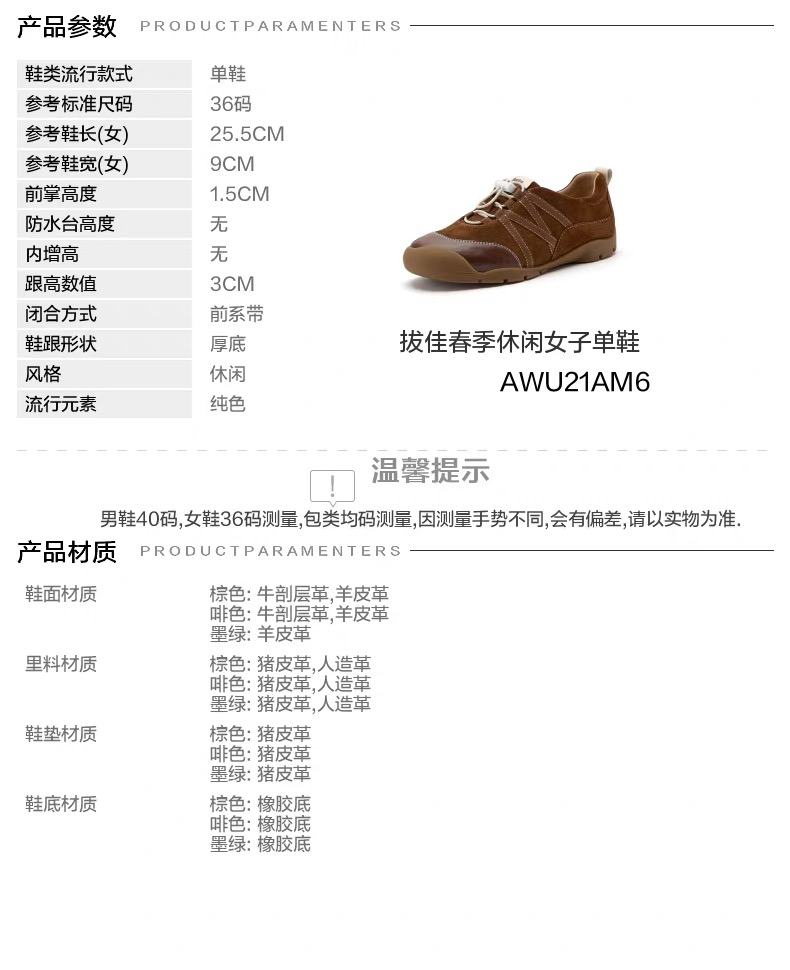 【云粉节】BF楼Bata休闲鞋女2026春款日常通勤时尚百搭运动鞋AWU21AM6 吊牌价999 活动价699