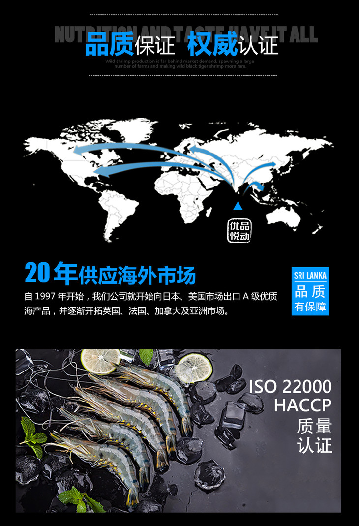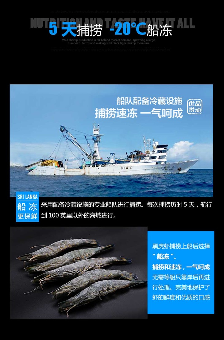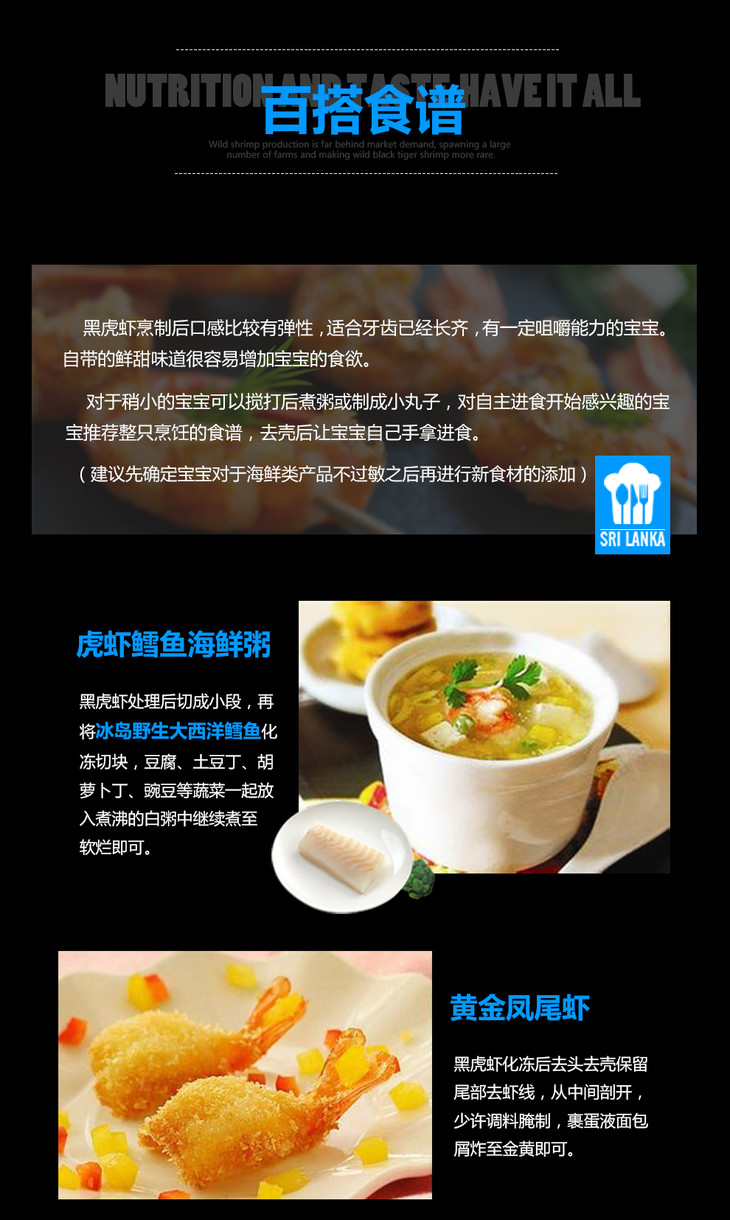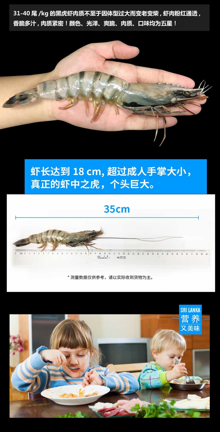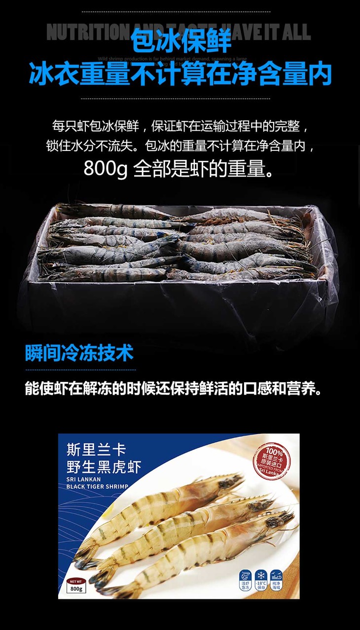 原装进口斯里兰卡野生黑虎虾 800g