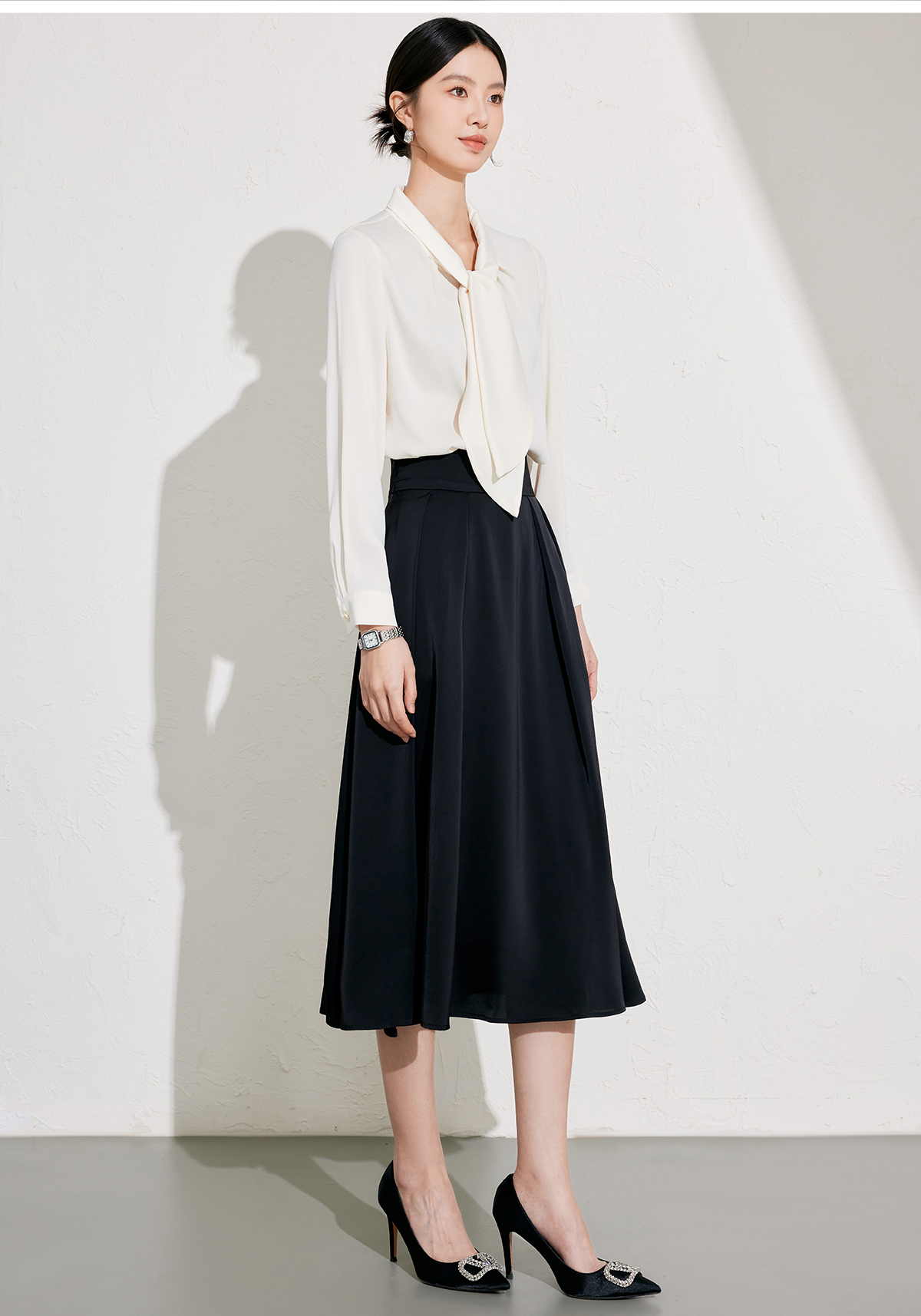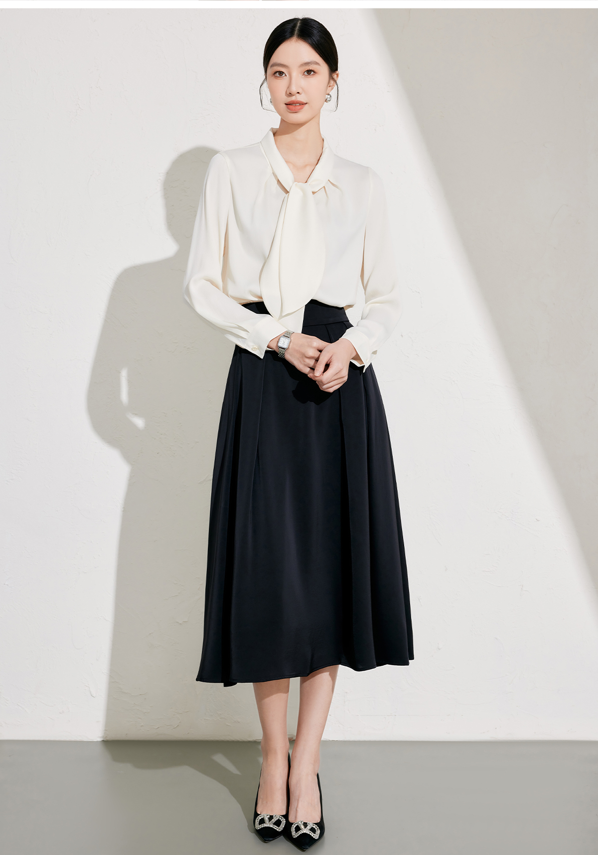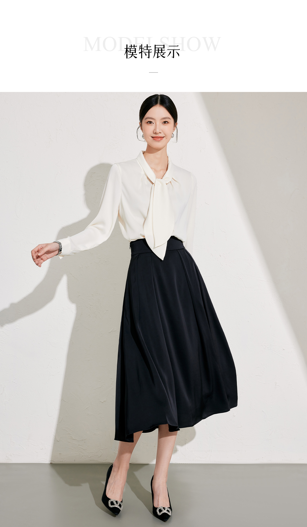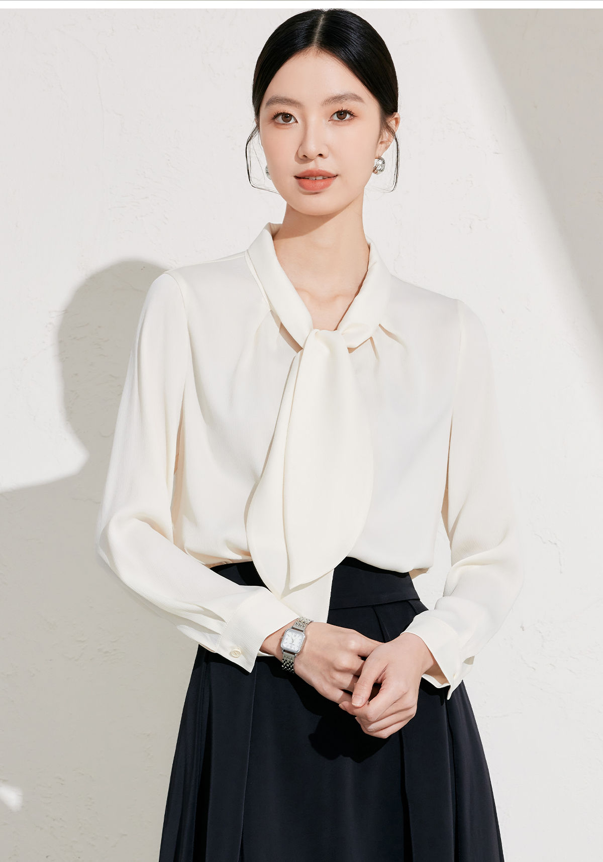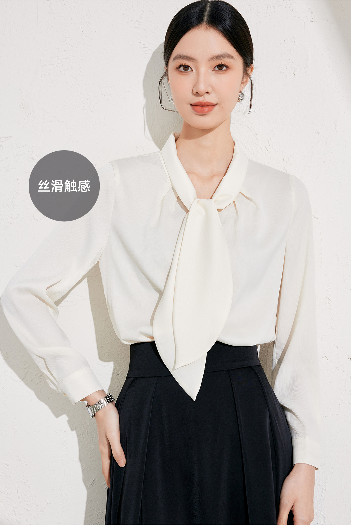 艾尚臣长袖衬衫女2025新款轻熟风设计感杏色兔耳朵系带高级感衬衣