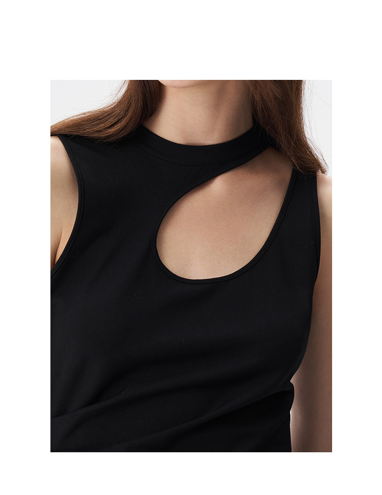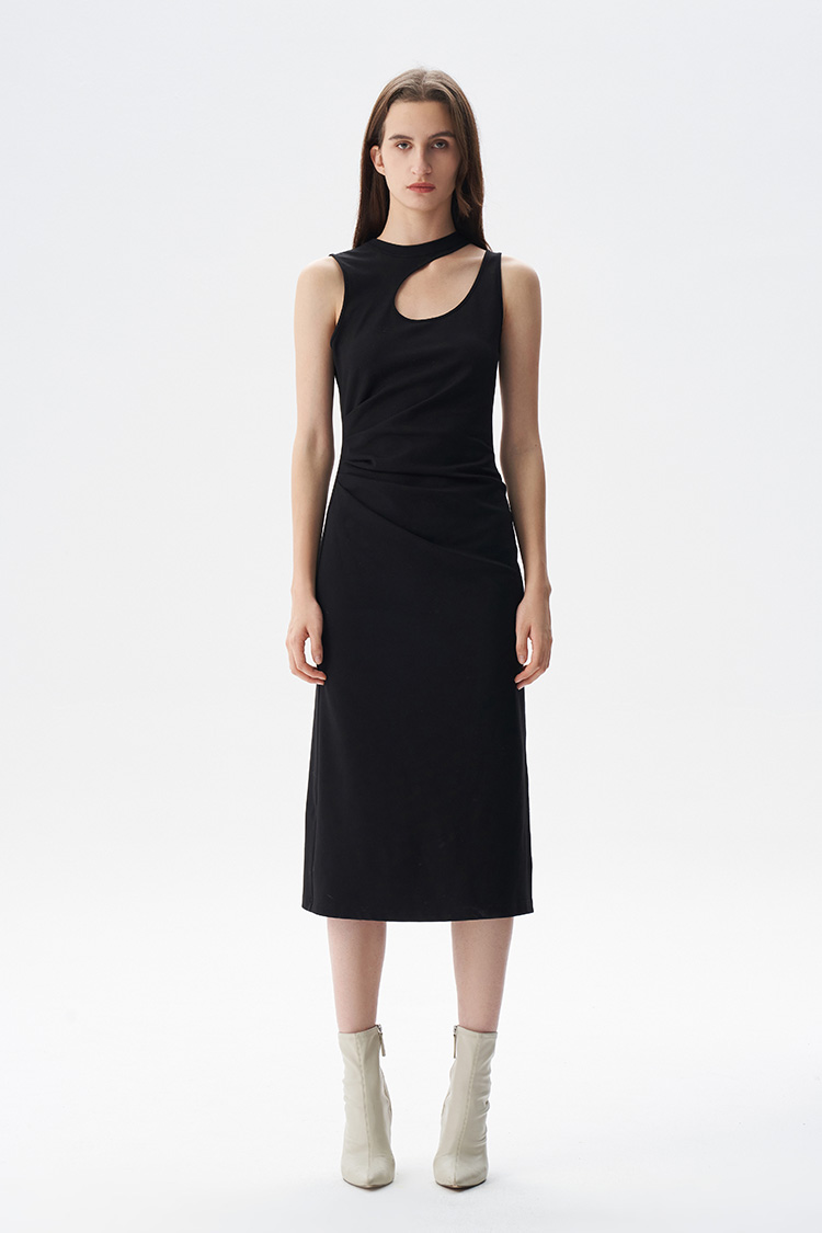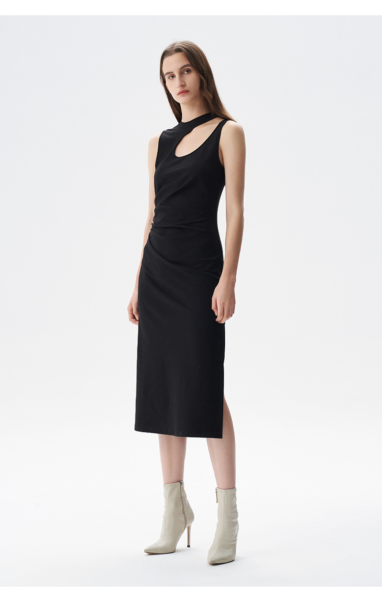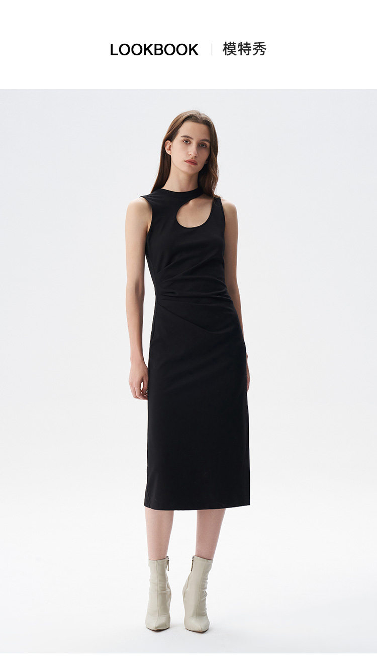 【2F】IRO春季新款法式轻奢女装气质修身不规则镂空领背心连衣裙