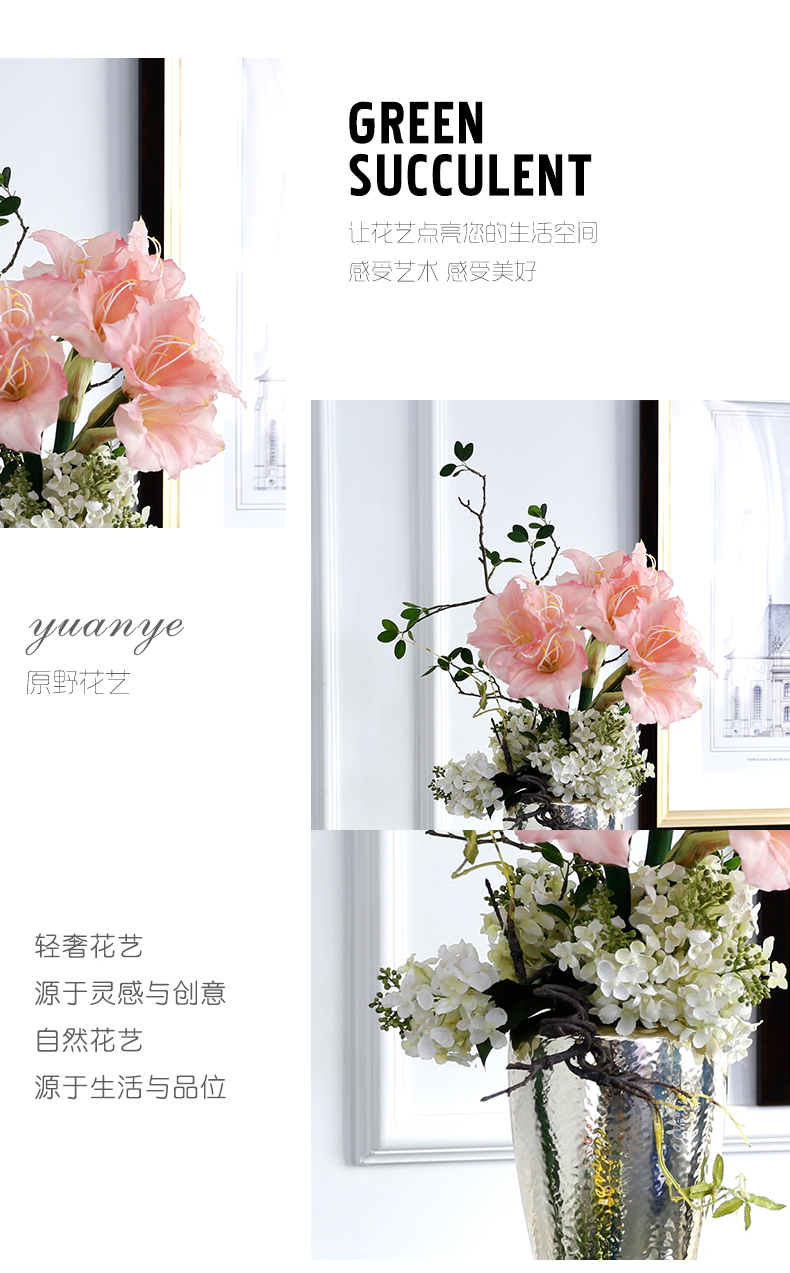 高档轻奢仿真花假花客厅室内餐桌玄关茶几金银色花瓶独特风格时尚