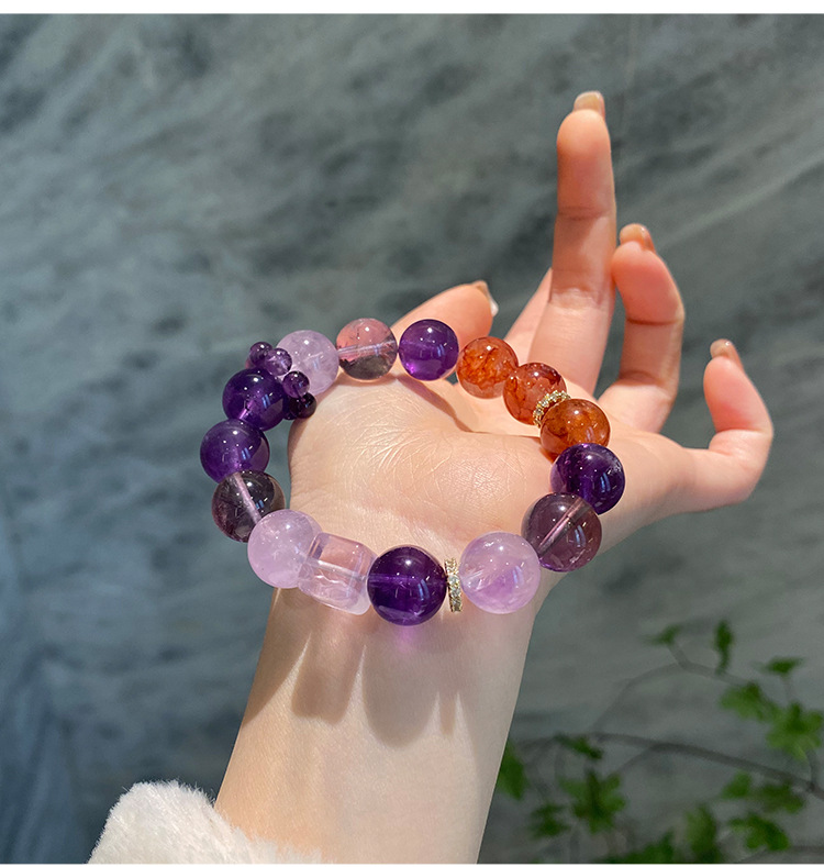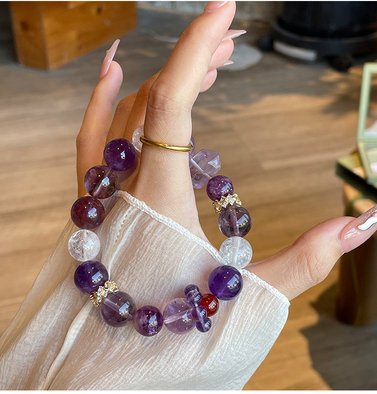 【转运上岸】天然紫水晶手链女九紫离火手串设计款大珠子 紫气东来 正品有证书