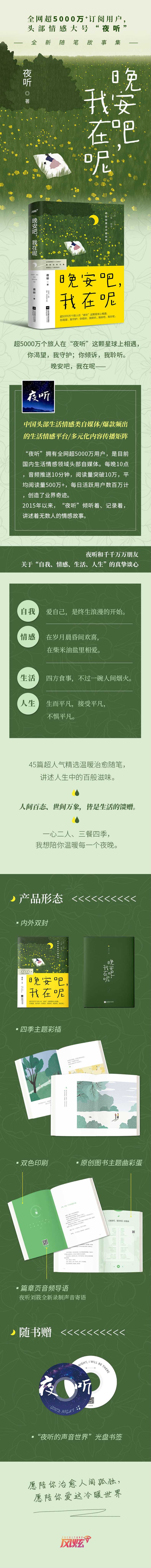 无尽暗夜,每一个人都是孤独的小兽,在夜色下,卸下白日里的防备与盔甲,而“夜听”就是这个温柔的港湾,记录着倾听着千千万万人的的心情、感情、故事,给你无尽温柔与包容,在这里,你可以不那么坚强,不那么勇敢。