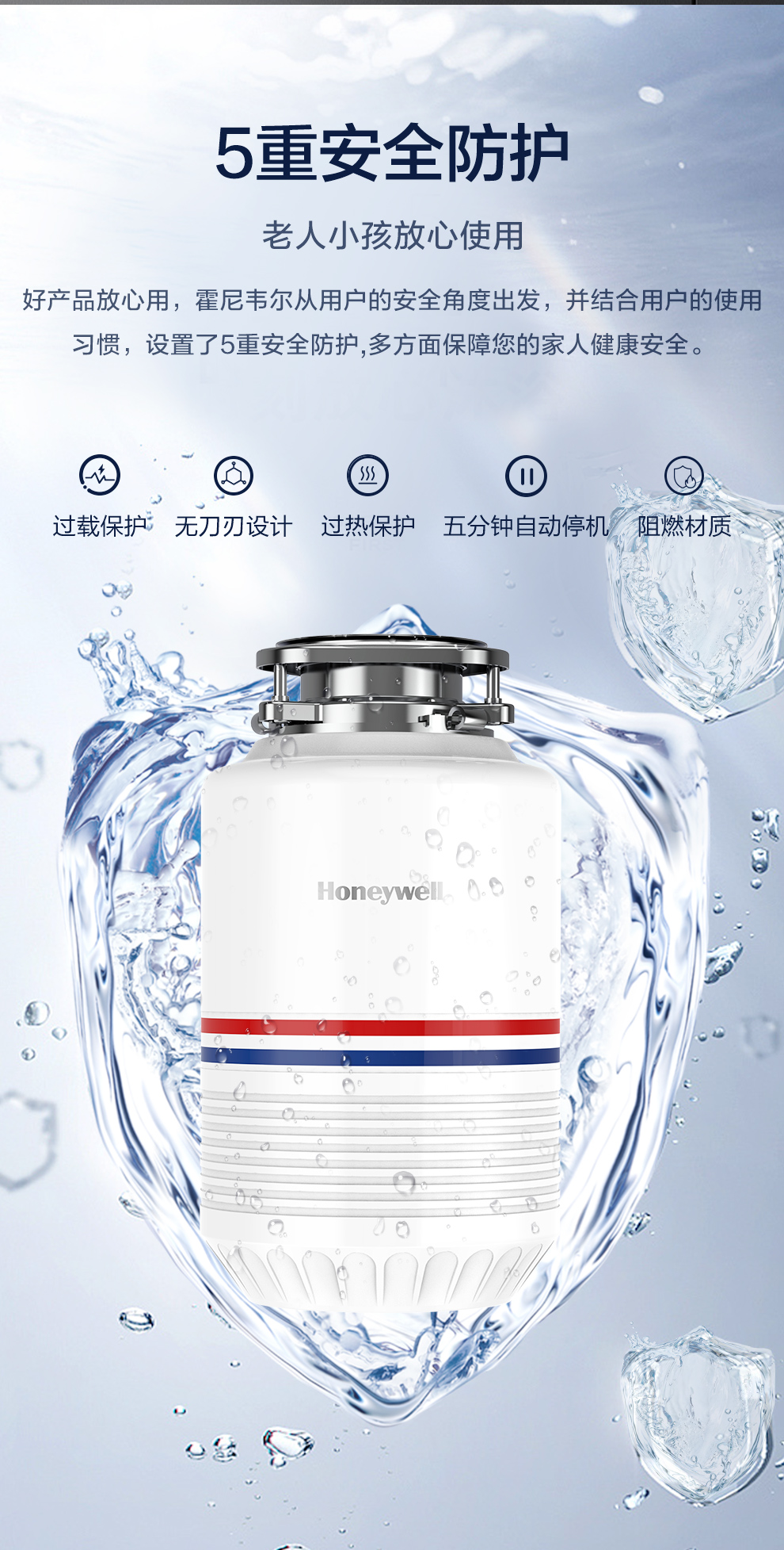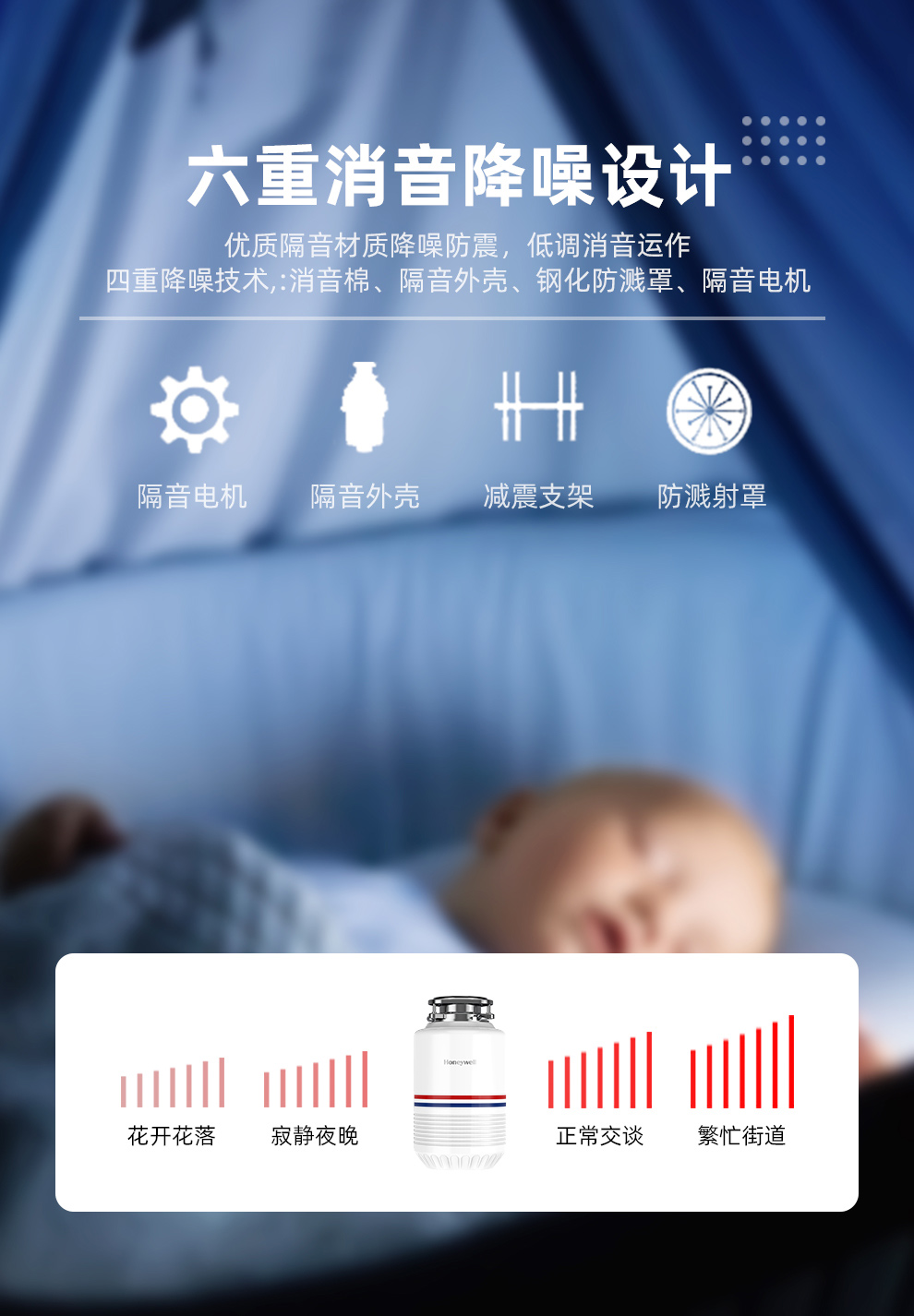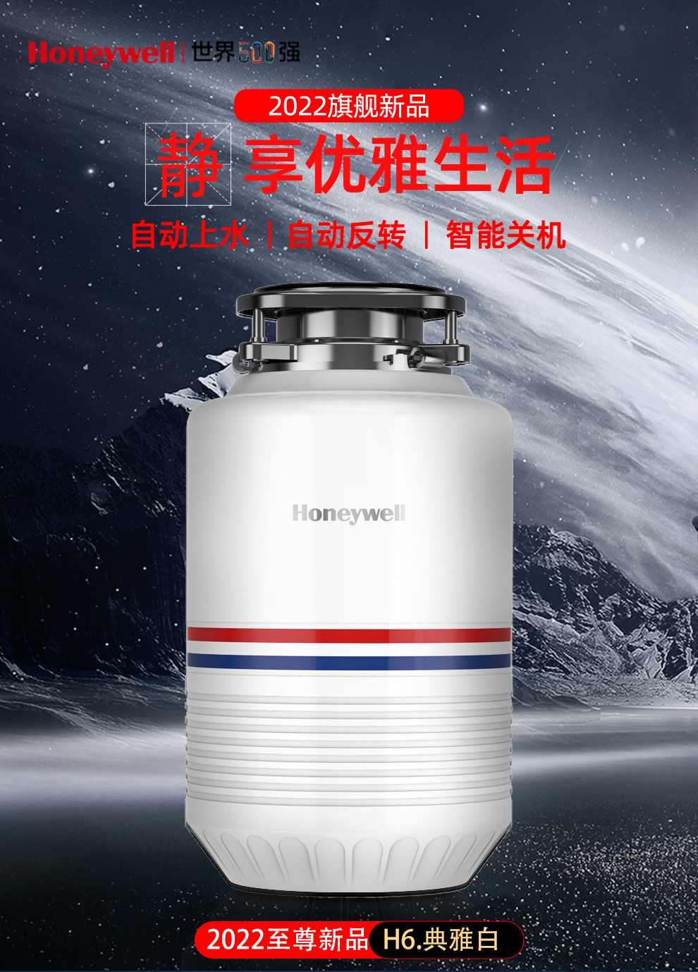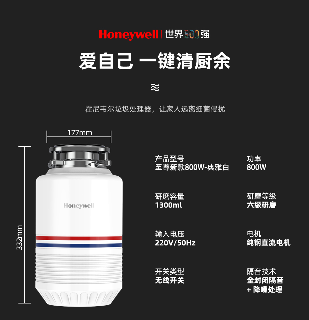 霍尼韦尔(Honeywell)食物垃圾处理器厨房家用餐厨水槽下水道厨余研磨粉碎机无线 自动进水自动反转智能关机800W 典雅白HW-A-728-1垃圾处理器