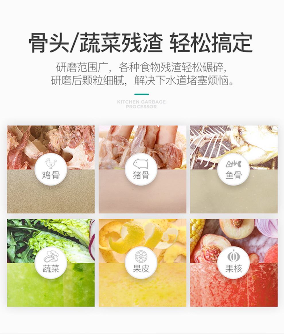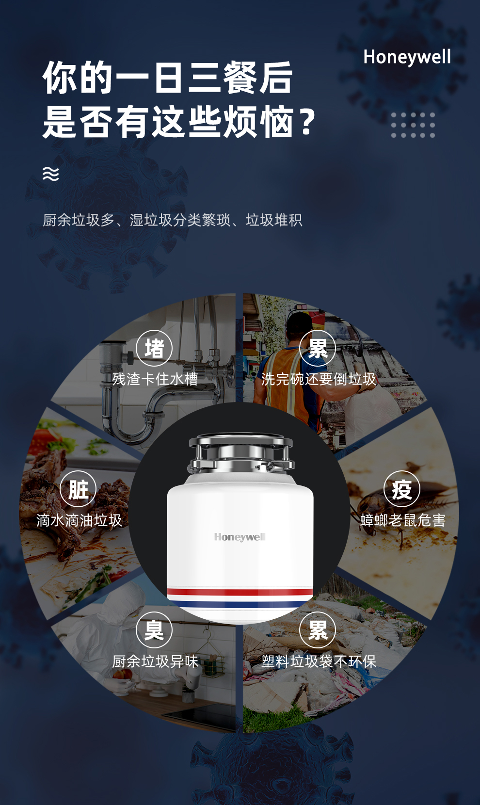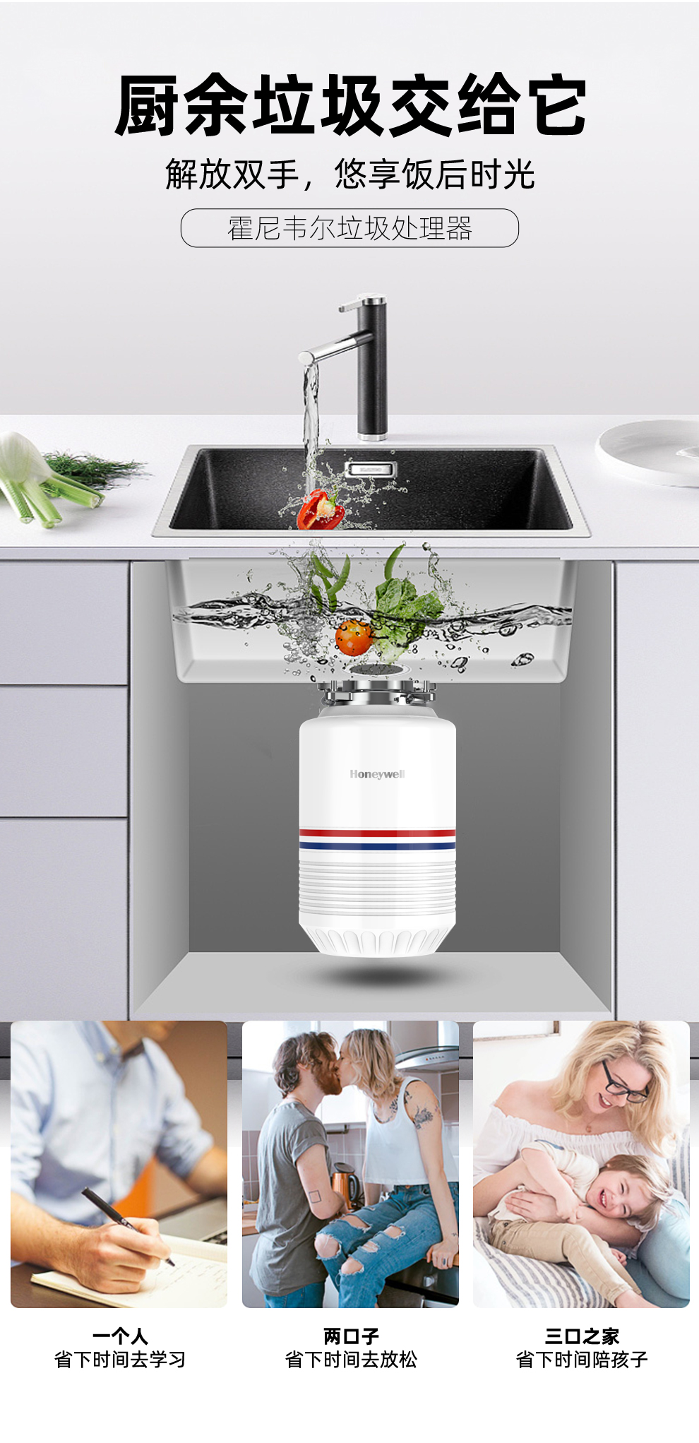 霍尼韦尔(Honeywell)食物垃圾处理器厨房家用餐厨水槽下水道厨余研磨粉碎机无线 自动进水自动反转智能关机800W 典雅白HW-A-728-1垃圾处理器