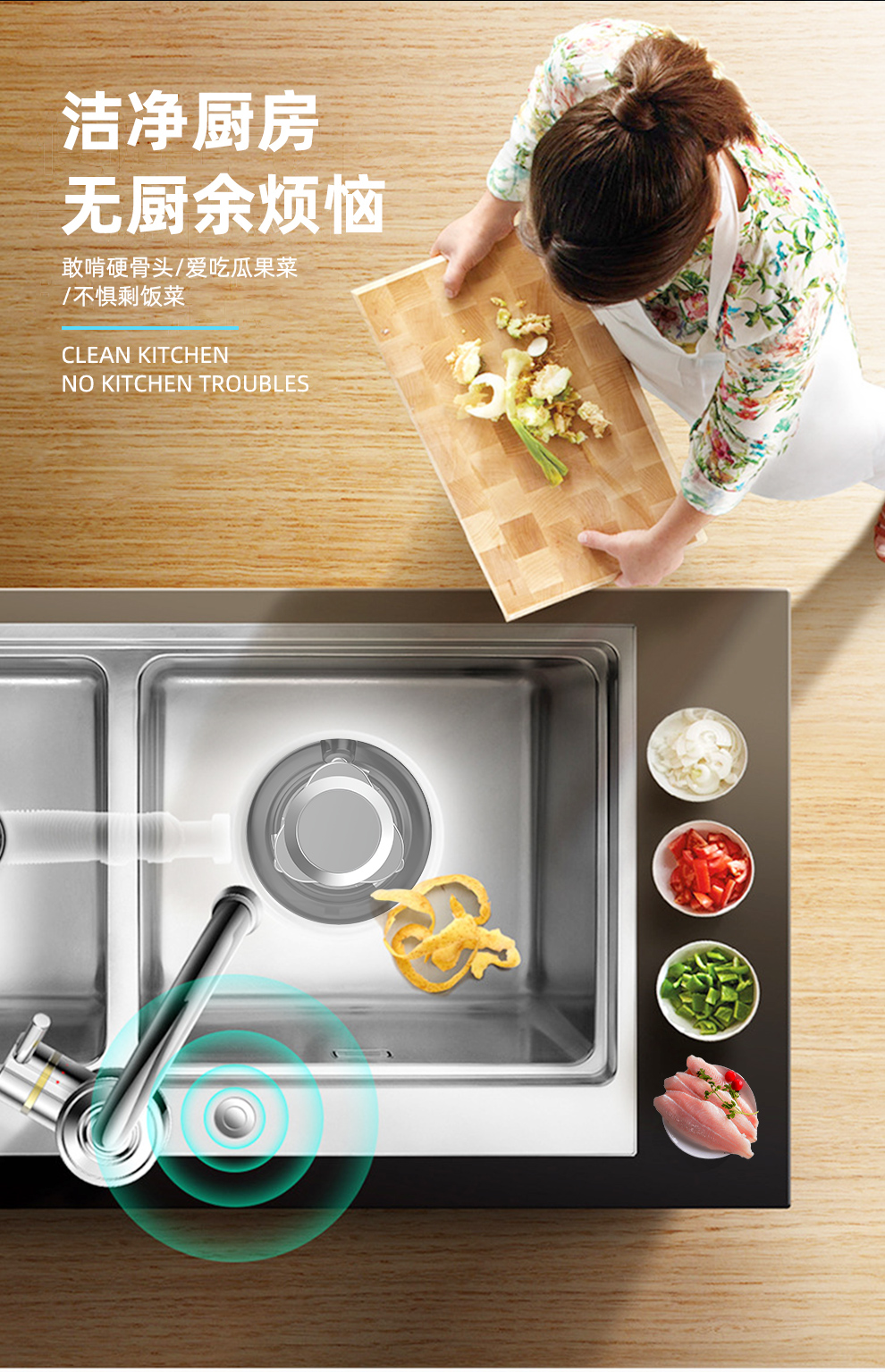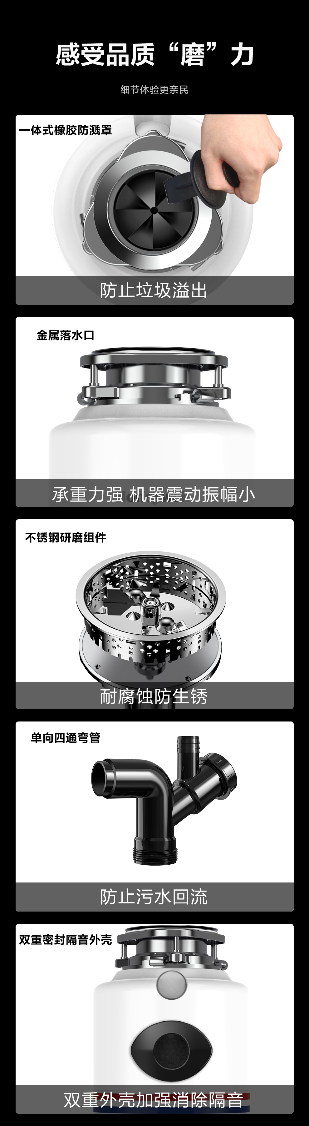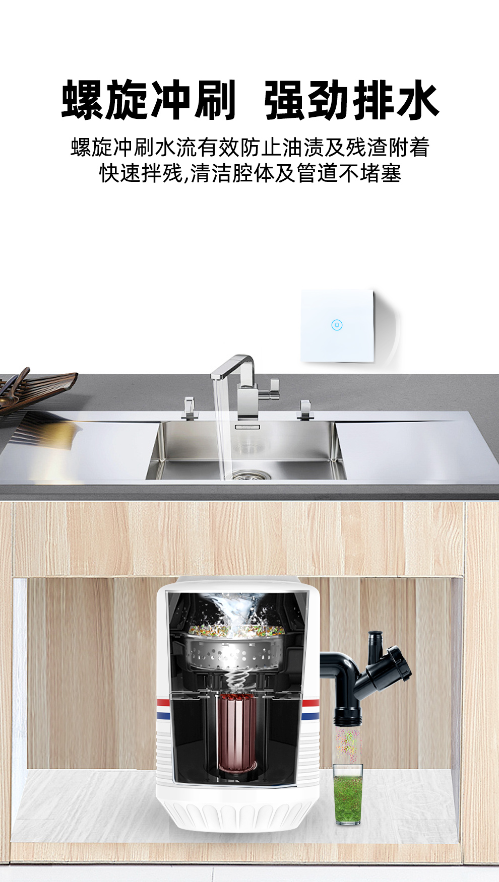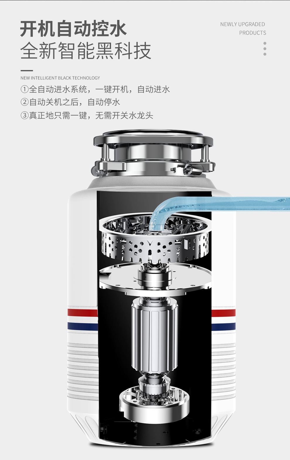 霍尼韦尔(Honeywell)食物垃圾处理器厨房家用餐厨水槽下水道厨余研磨粉碎机无线 自动进水自动反转智能关机800W 典雅白HW-A-728-1垃圾处理器