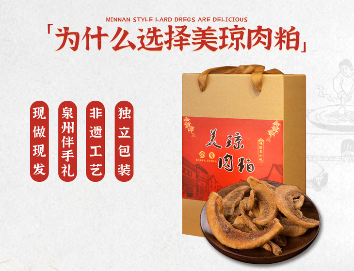 - 福建名小吃泉州伴手礼美琼肉粕,选用上等五花肉高温熬制而成,传承最古早的闽南味!
