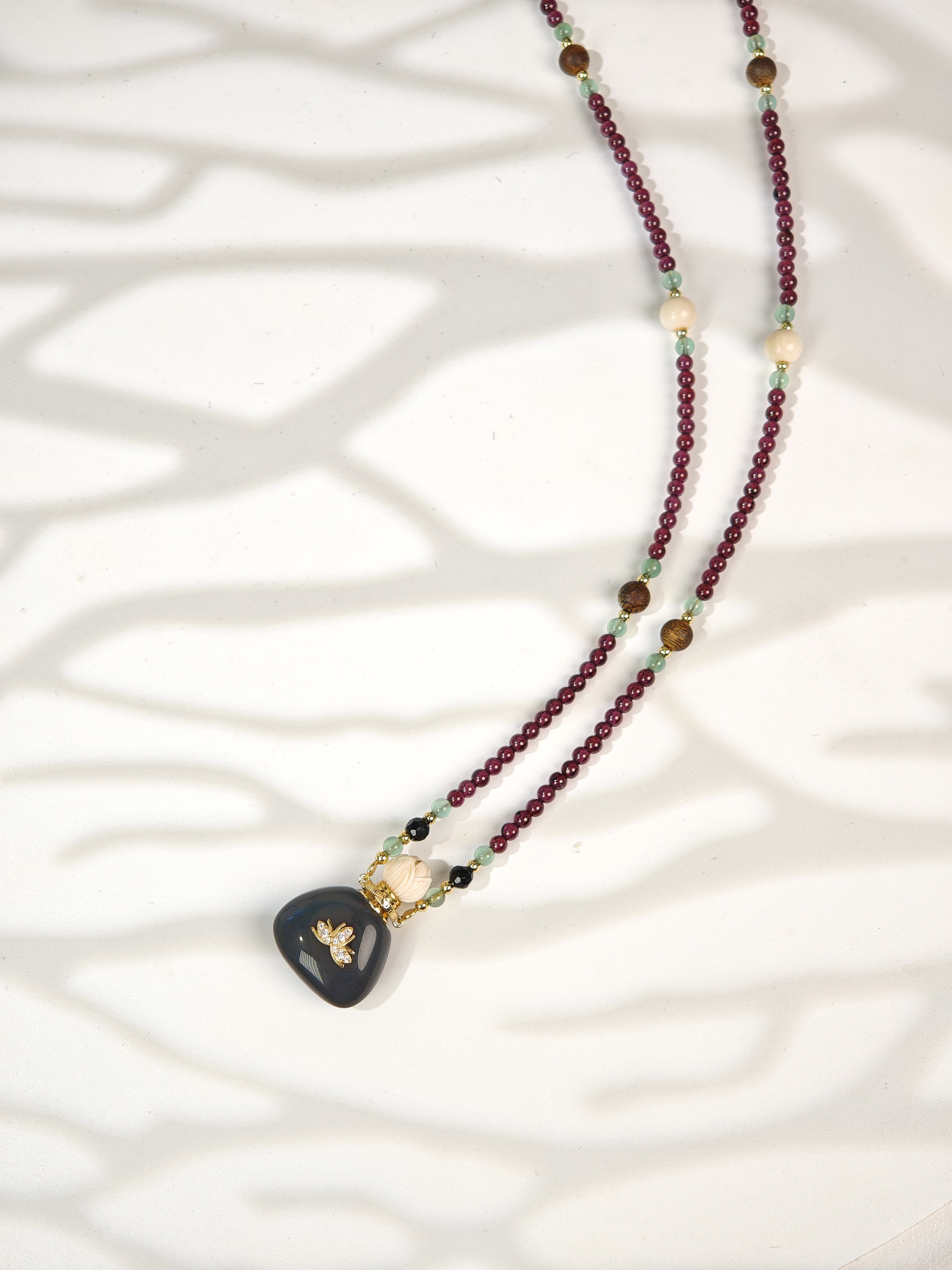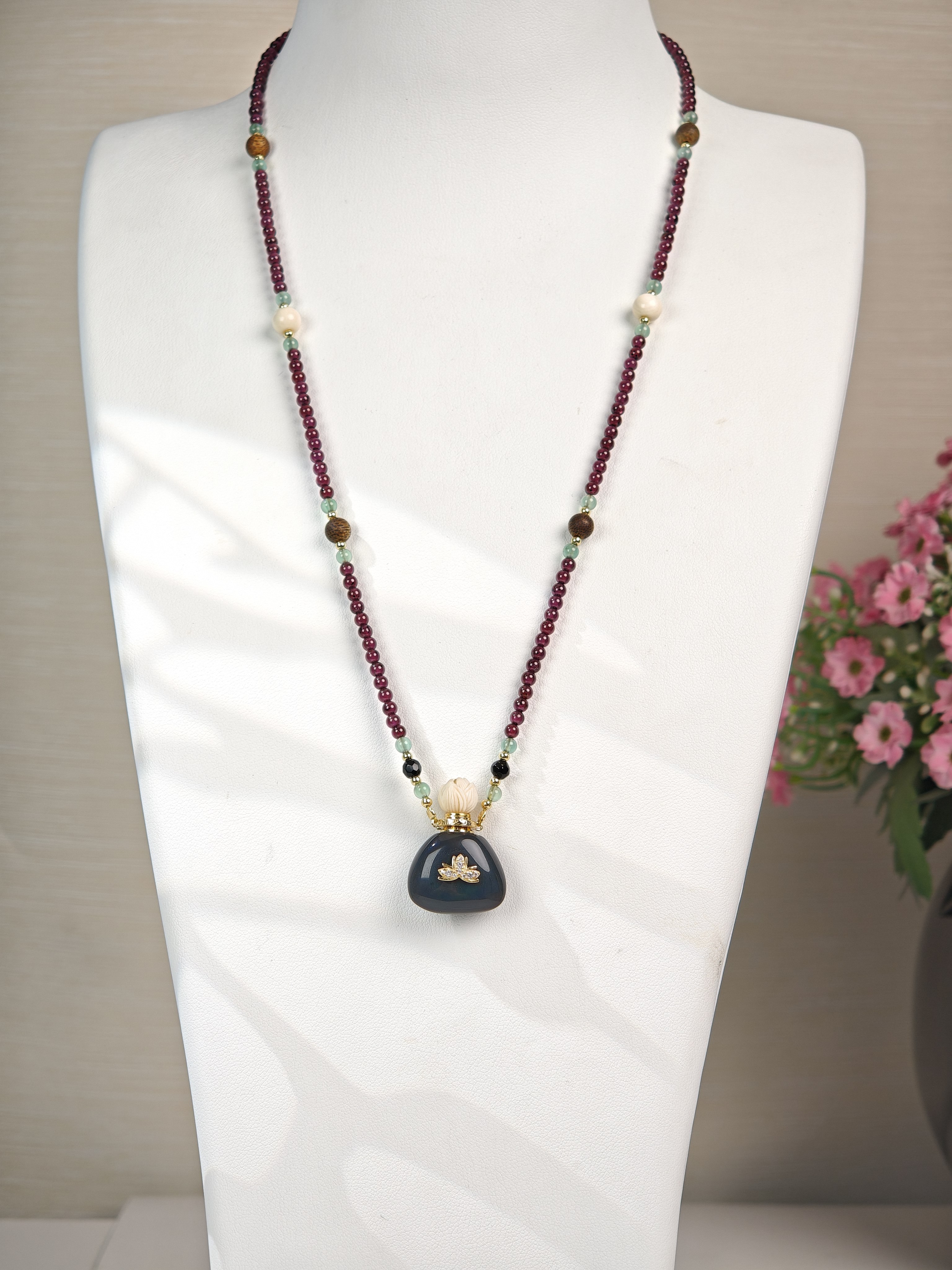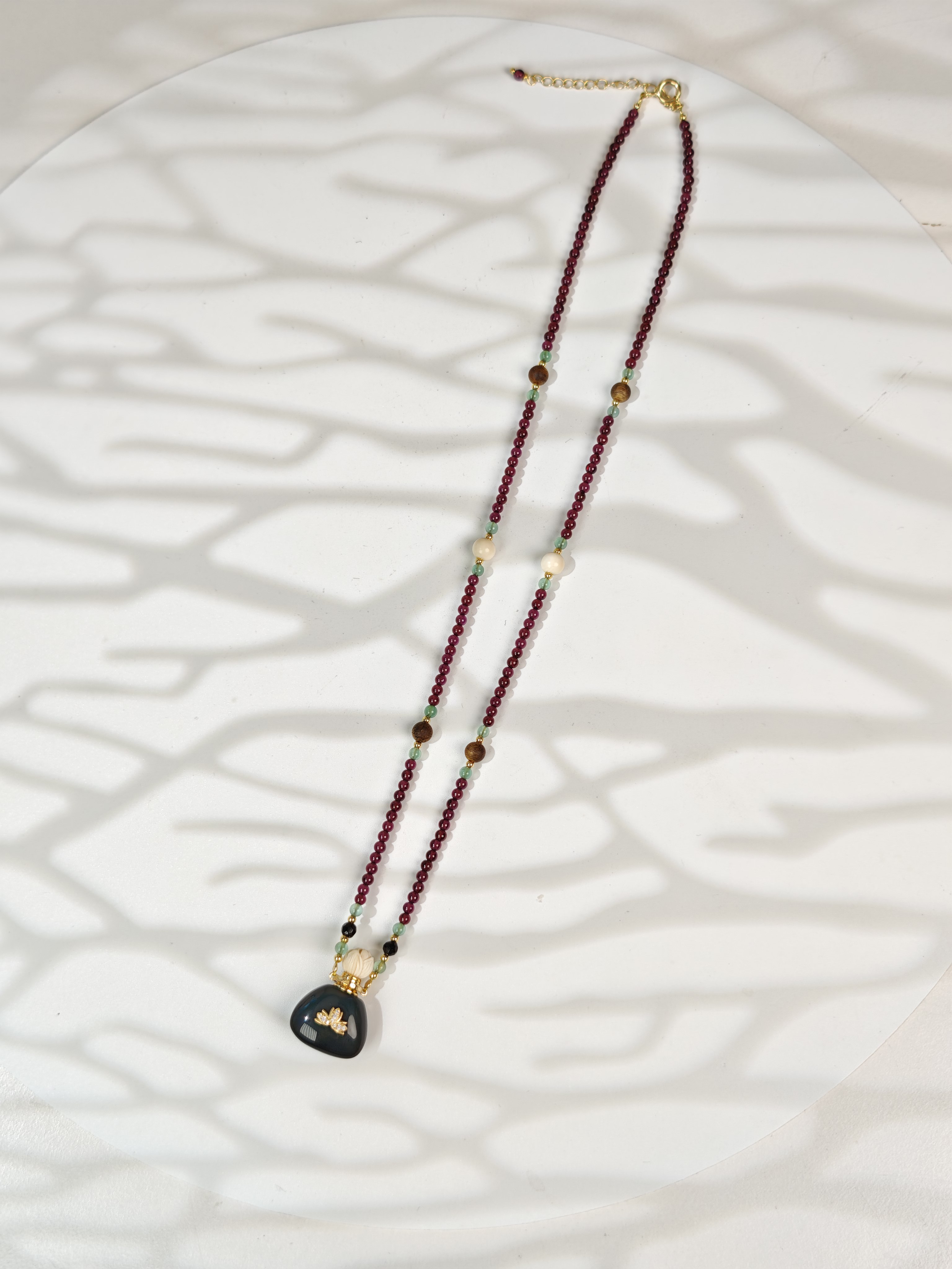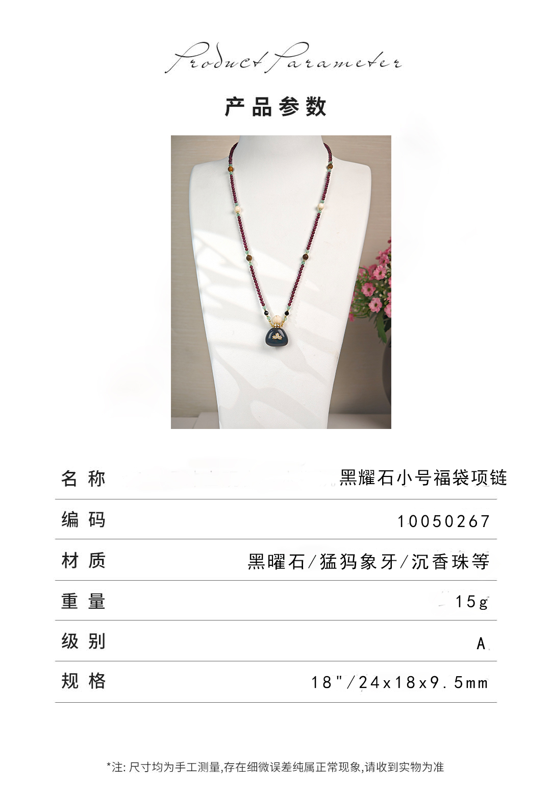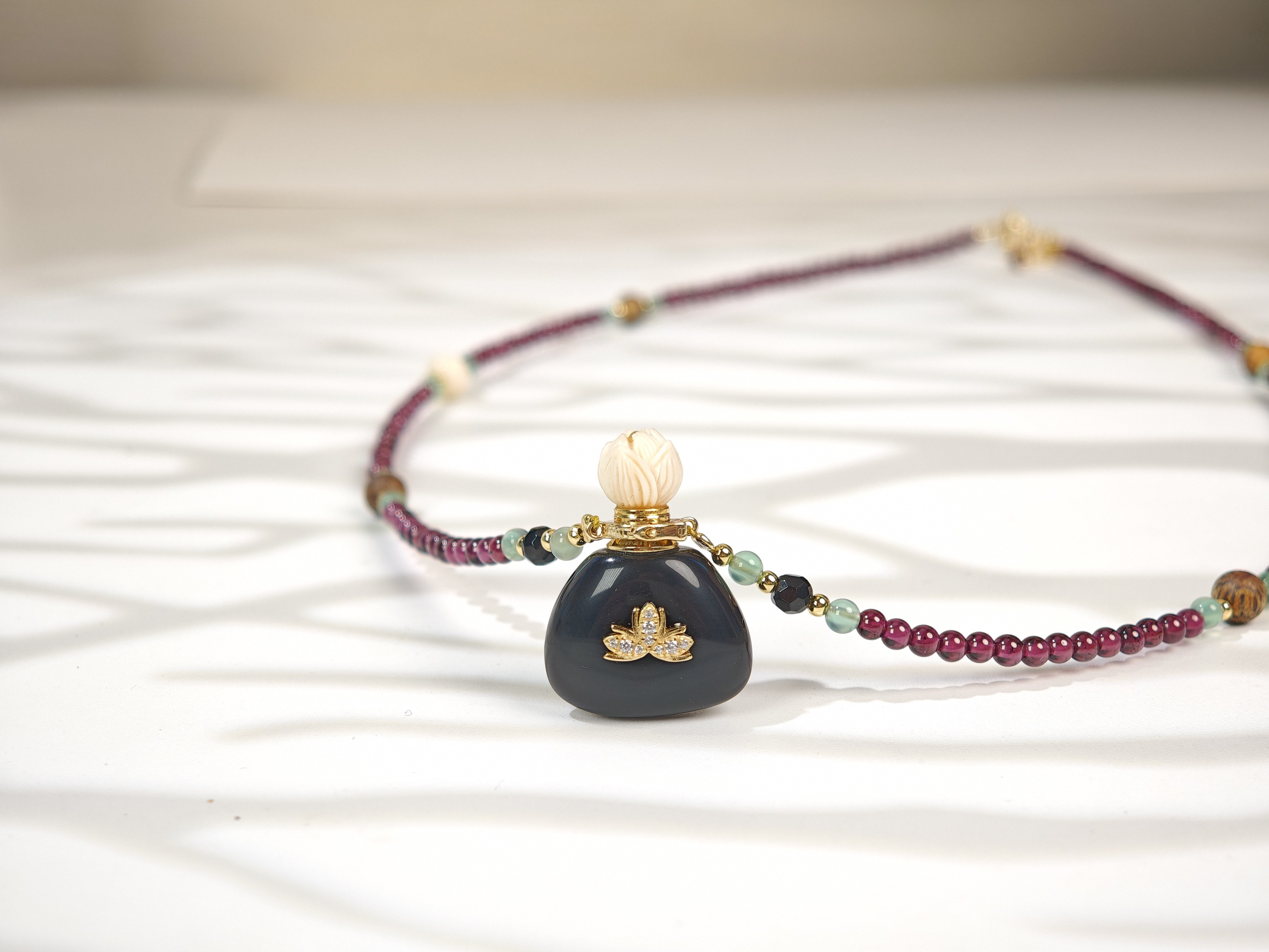 MELI&MOLI| 黑耀石小号福袋镶莲花吊坠沉香珠点缀珠串项链