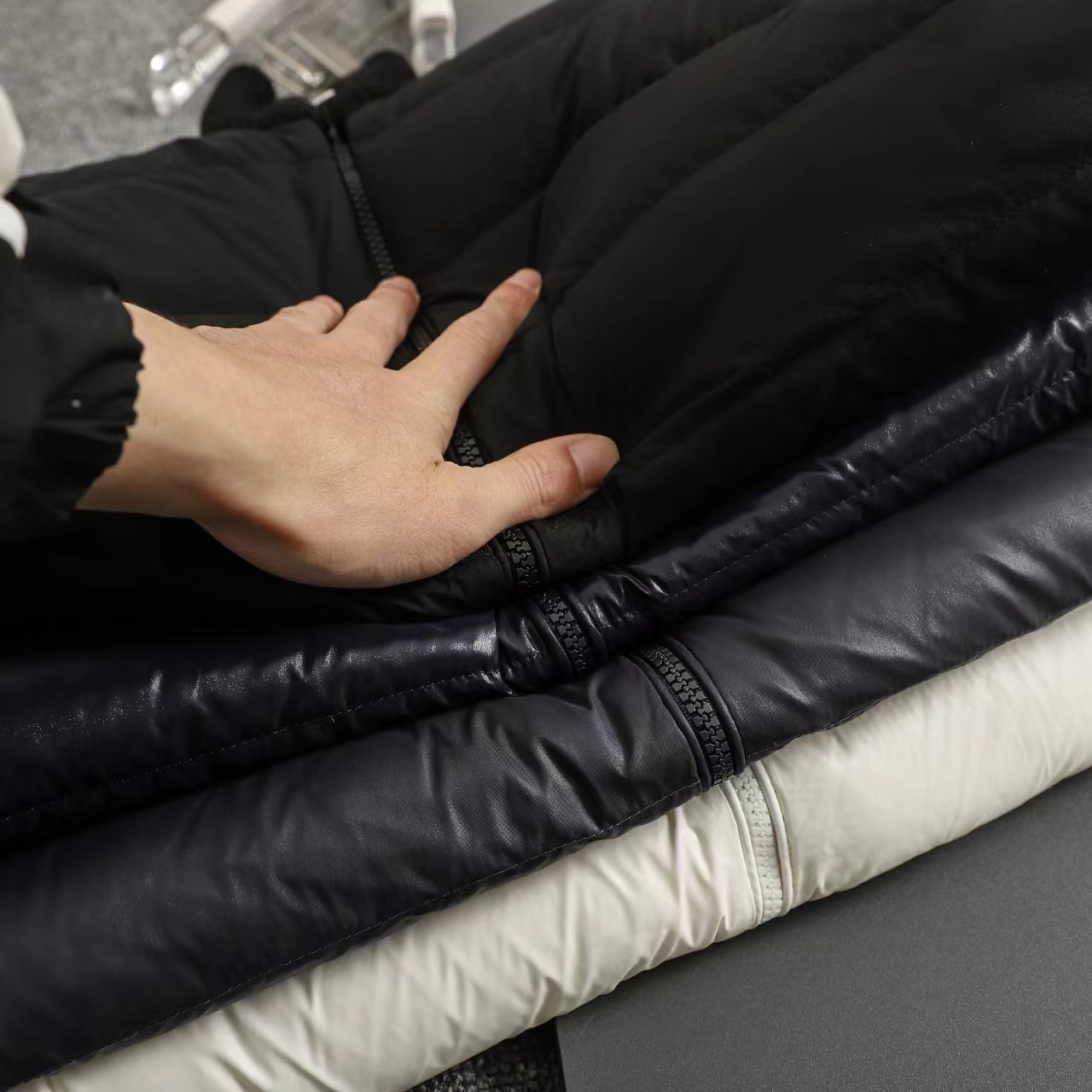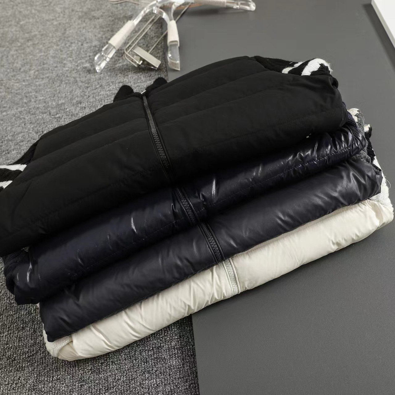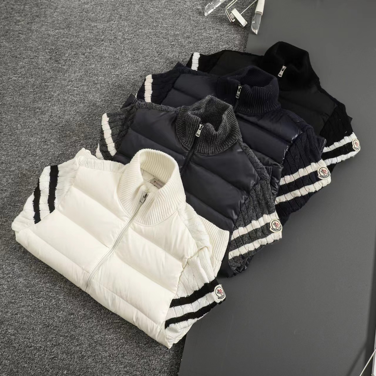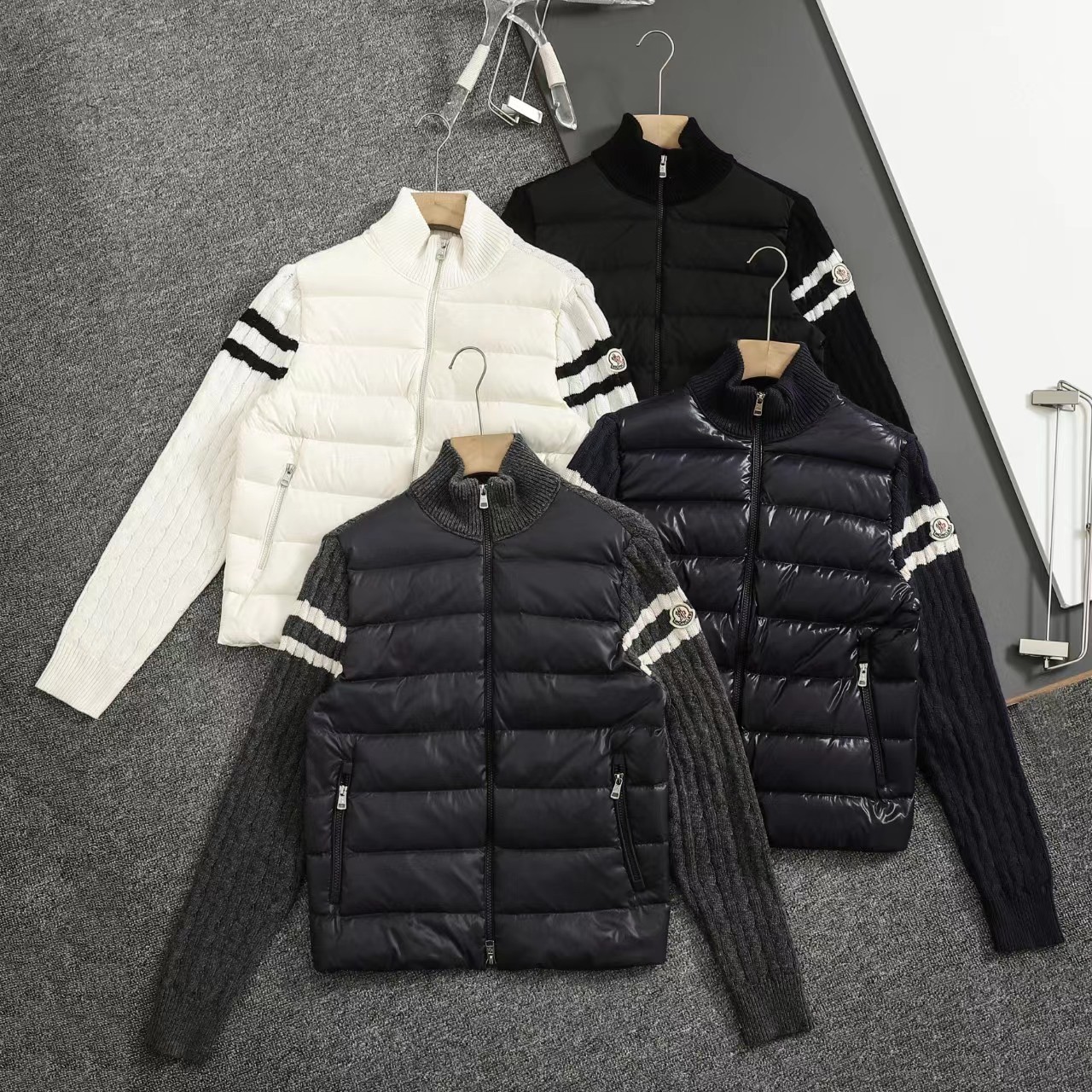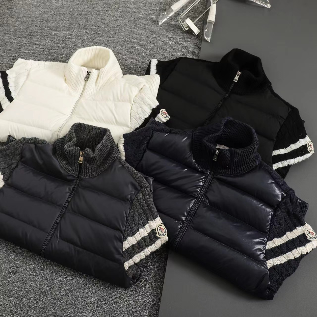 立领针织拼接羽绒服男款羽绒拼接后背 袖子 针织材质 针织拼接 前片 90白鸭绒 整件衣服上身轻便舒适简约 一款气质十分出众的款式,精典的学院风格打造,柔和且优雅的针织袖拼接设计,更显那种奢华复古的独特风情味道