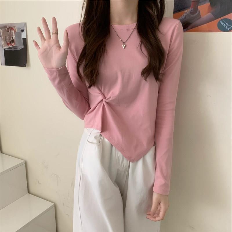 【舒适柔软,轻盈透气❗️新款秋季韩版不规则设计感长袖T恤】女别致学生上衣女打底衫 商品图0