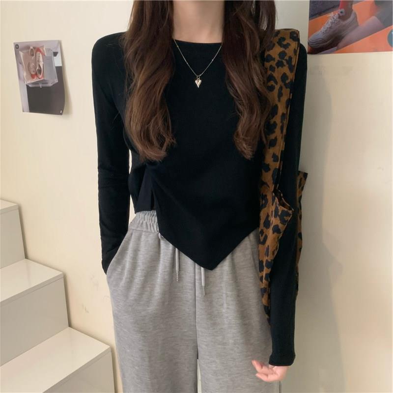 【舒适柔软,轻盈透气❗️新款秋季韩版不规则设计感长袖T恤】女别致学生上衣女打底衫 商品图1
