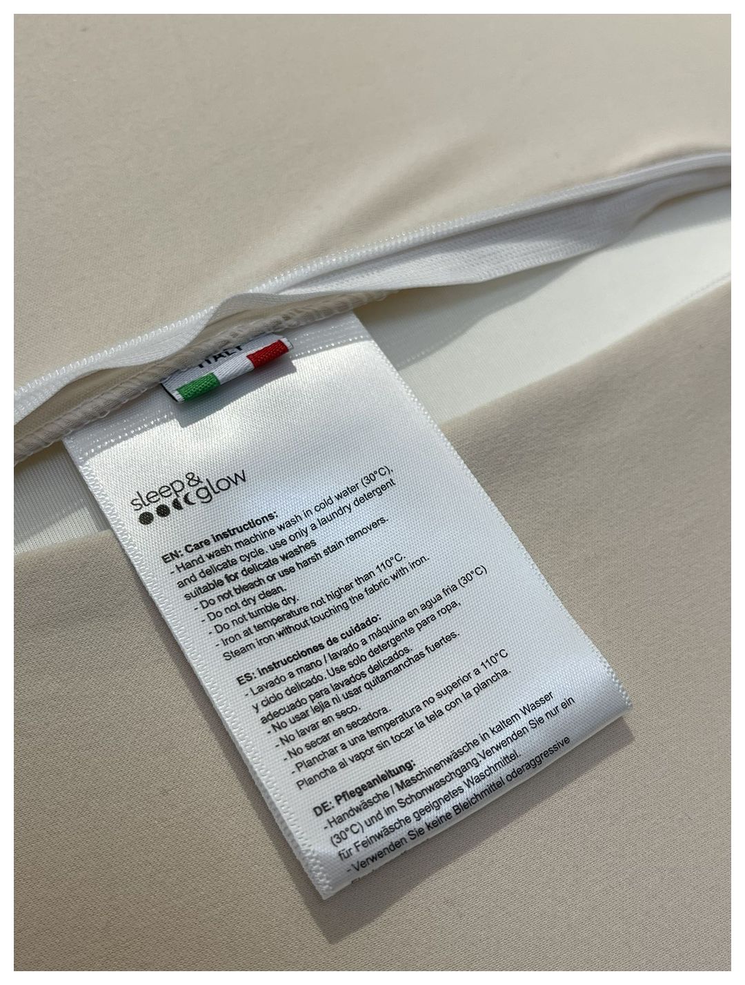 4⃣️标志性定制 Sleep&Glow 枕套。面料:100% 天丝,柔滑舒适