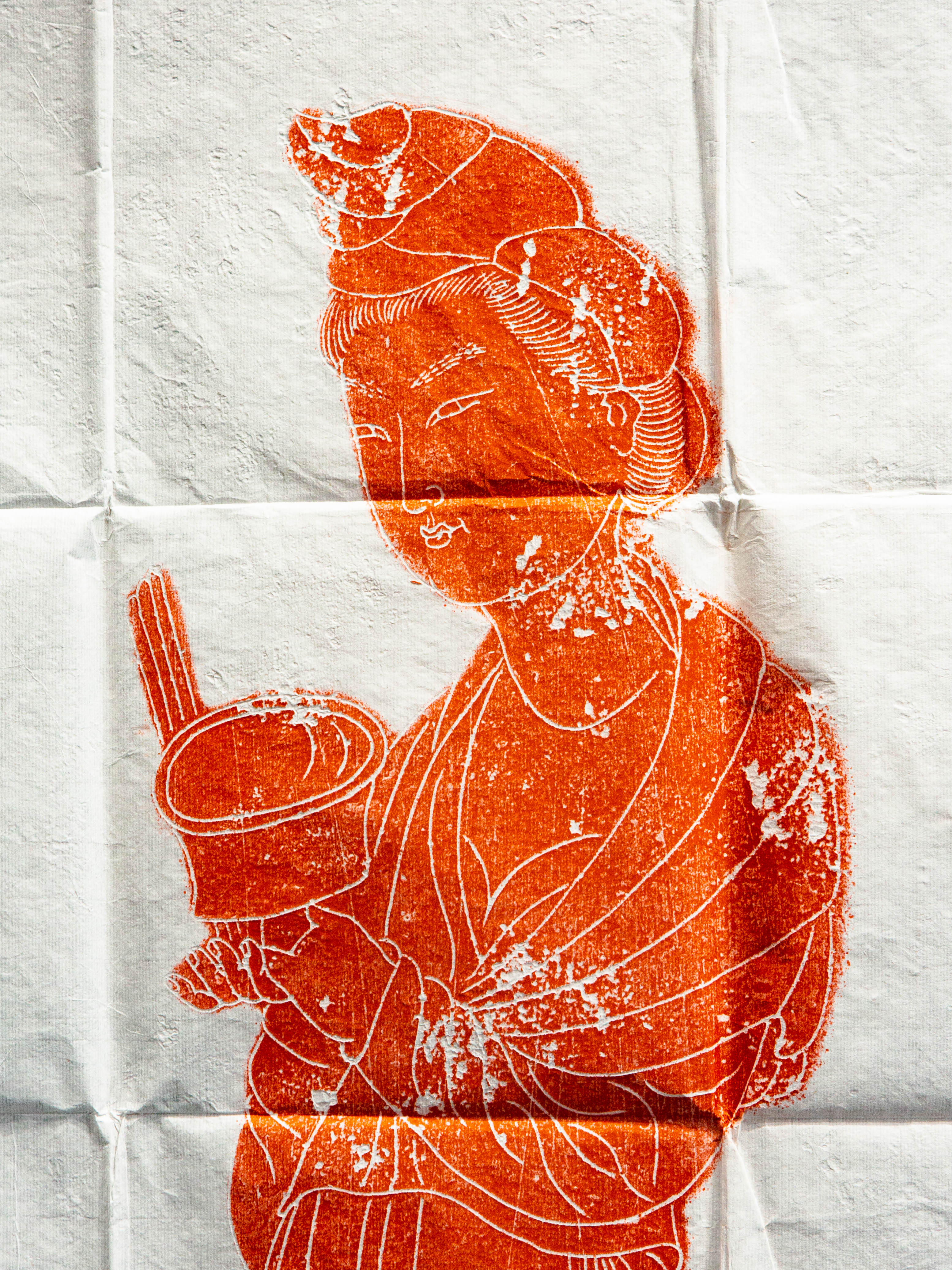 唐代仕女石刻拓片,原石原拓,仕女开脸端庄,神情怡然,婀娜多姿,服饰华丽,衣褶灵动,线条尽显金石气息,拓工精细,是难得之佳品。
