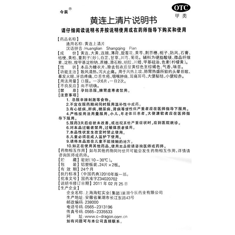 今辰 黄连上清片48片清热泻火解毒消炎止痛咽喉炎口舌生疮