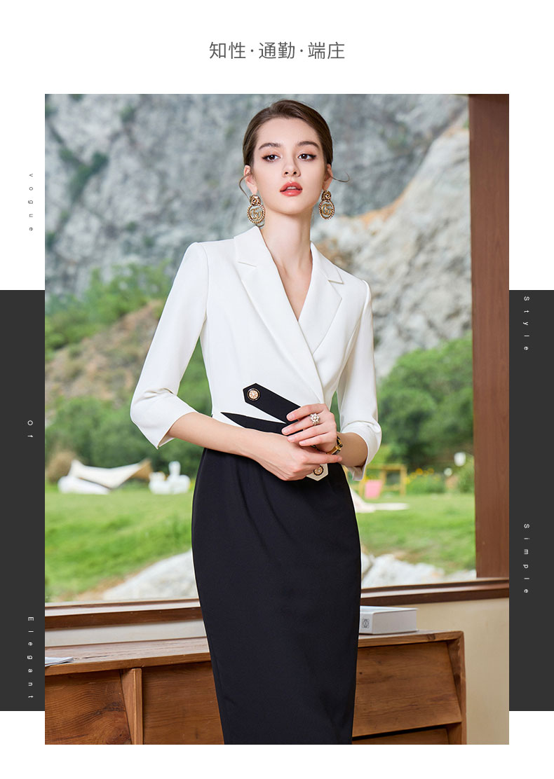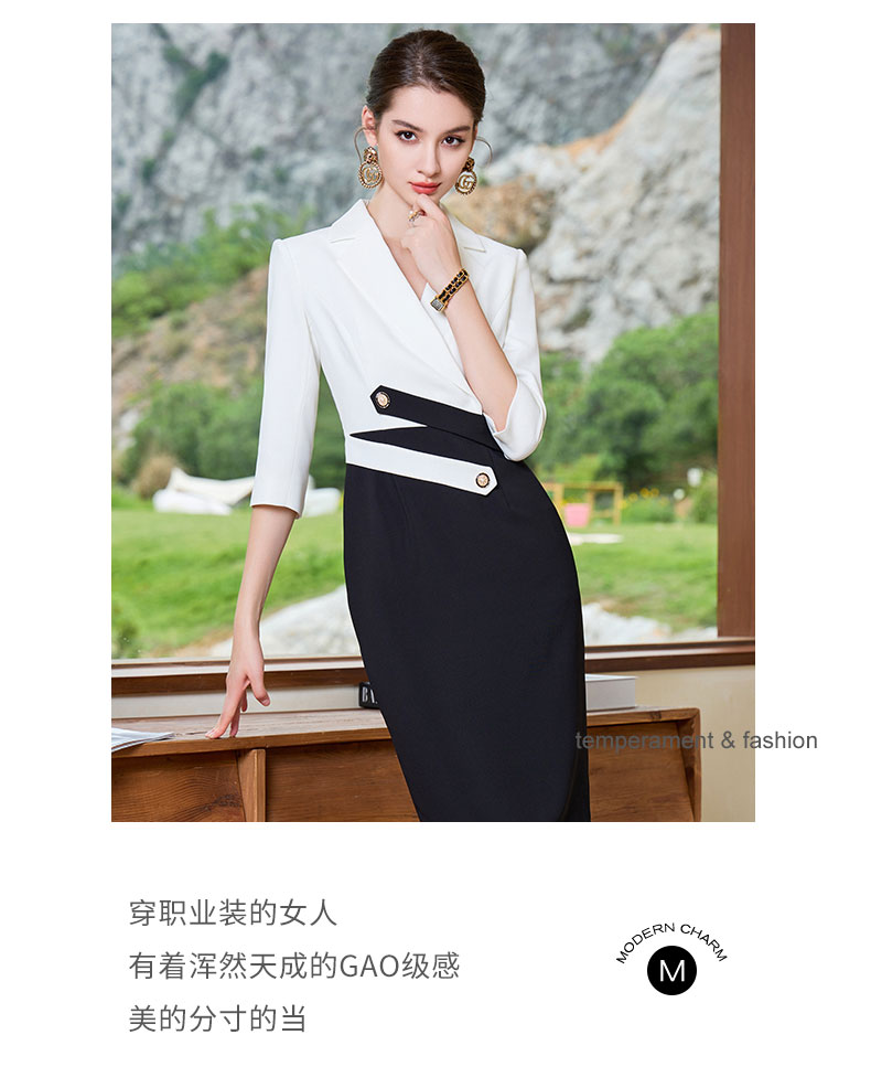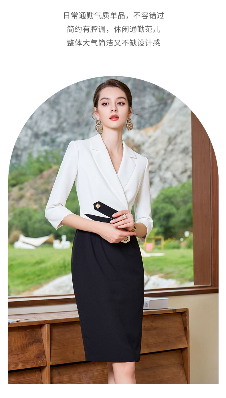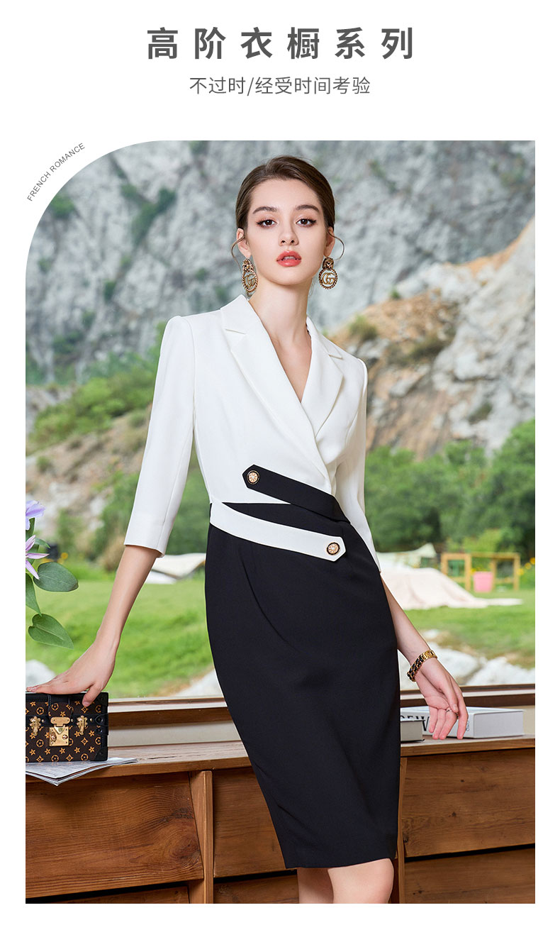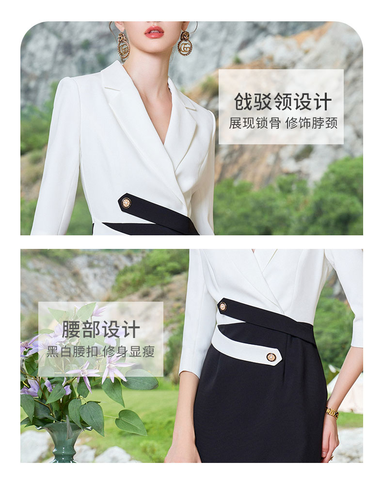 AD高级感黑白接拼西装连衣裙女夏季薄款职业装气质名媛工作套装裙