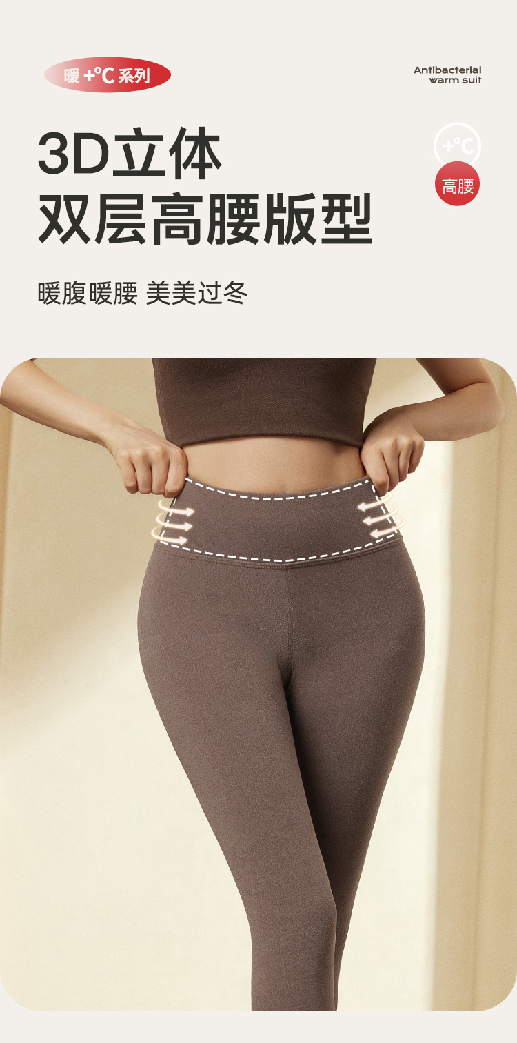 秋冬双面磨绒女士保暖裤秋裤女高腰收腹提臀不掉裆打底裤无痕舒适高腰轻绒裤