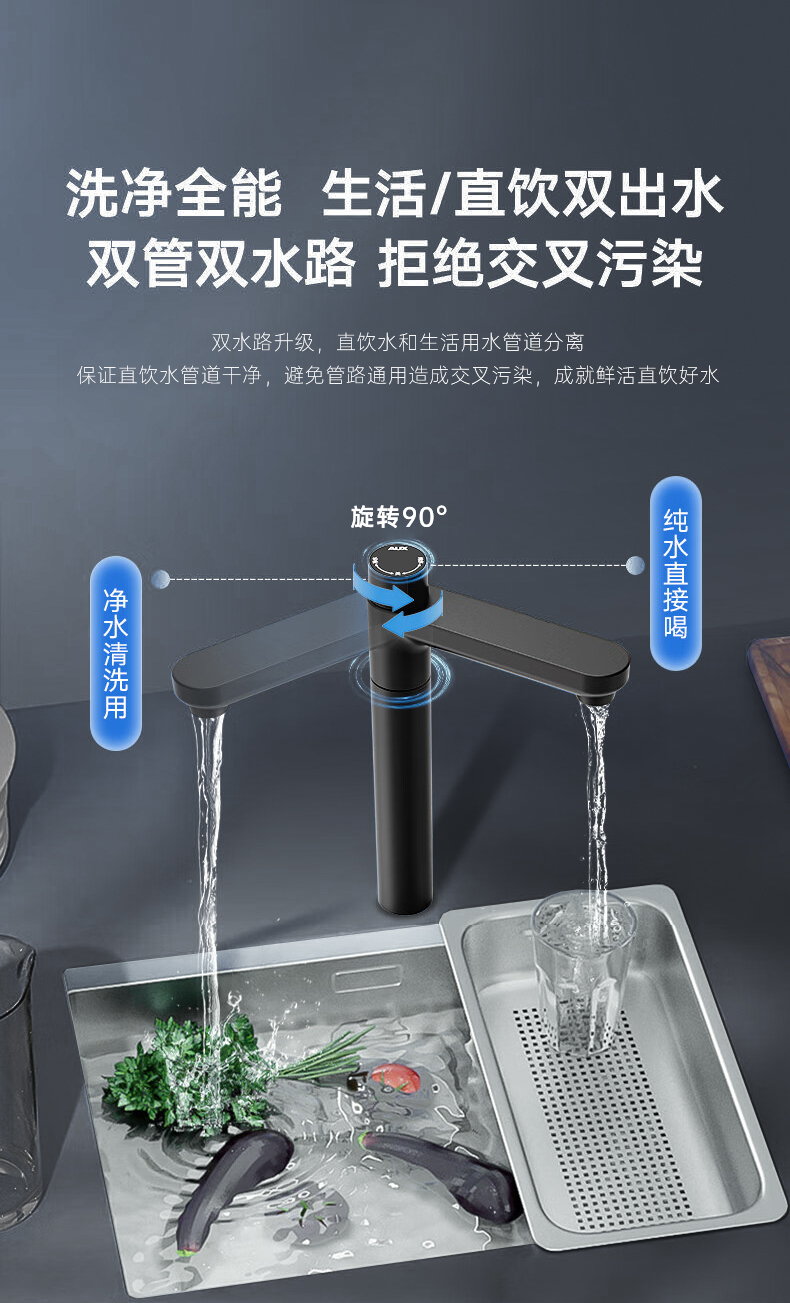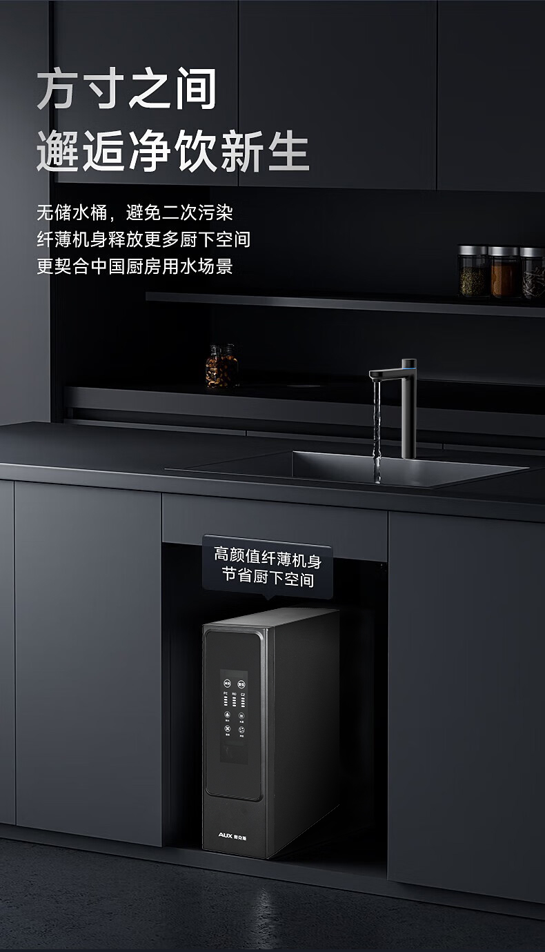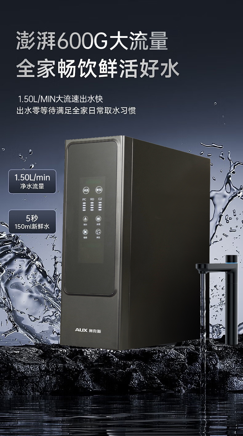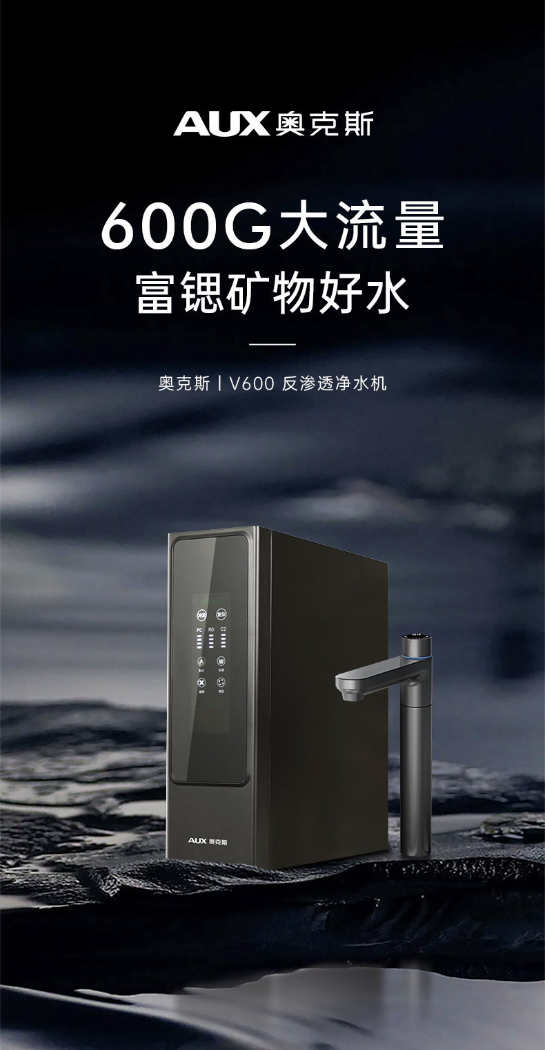 奥克斯厨下净水器大通量600G机型:V600月光灰