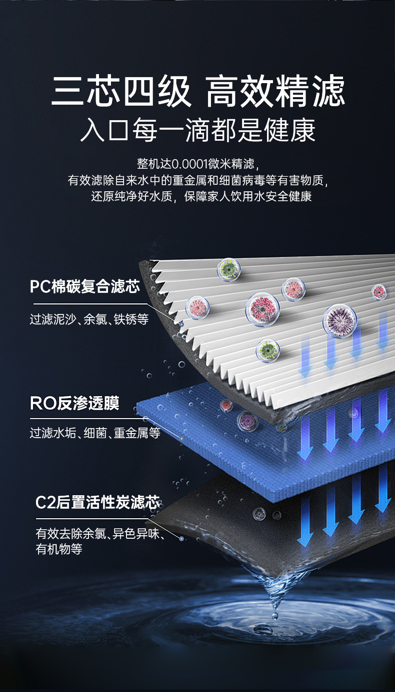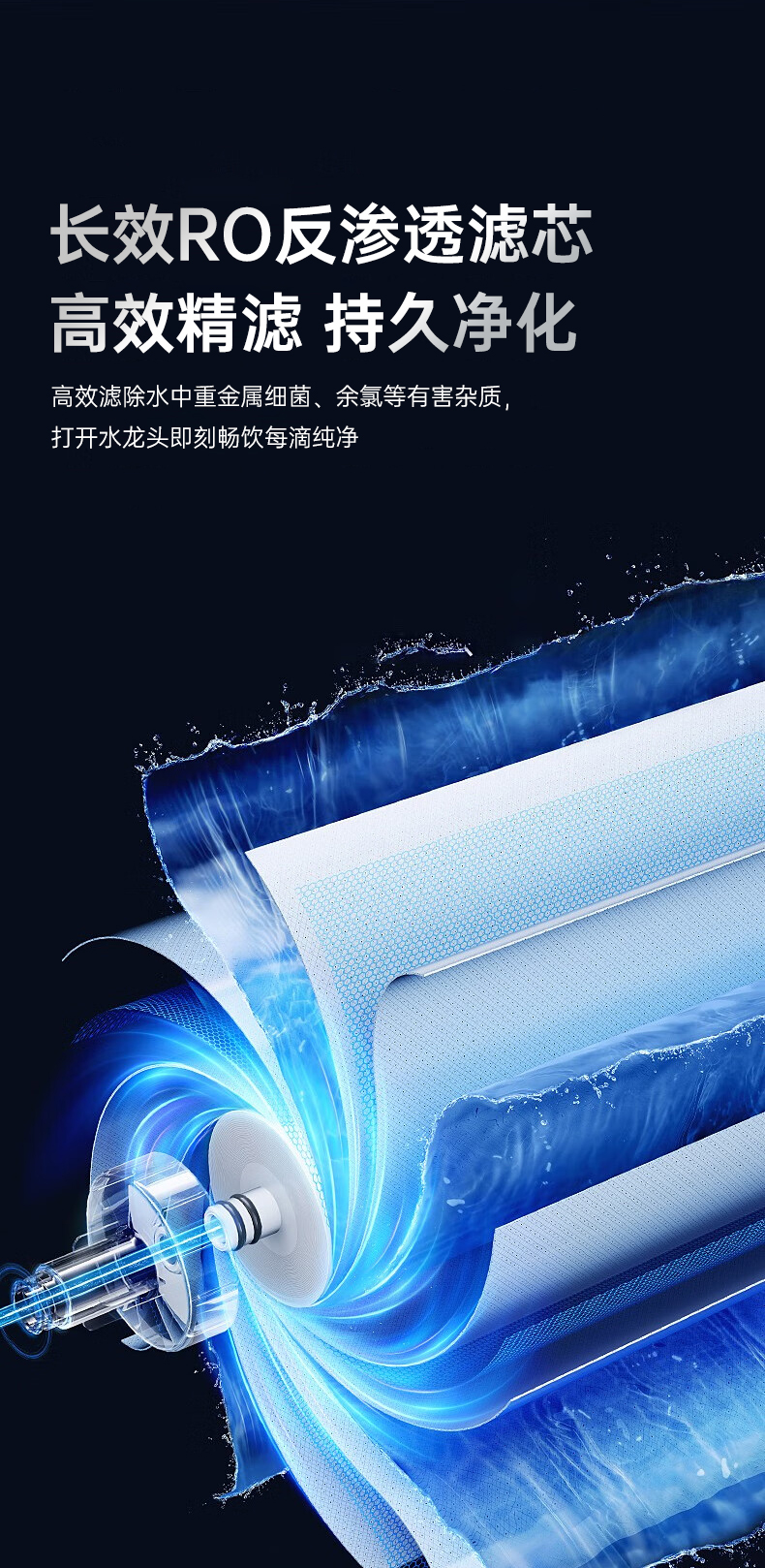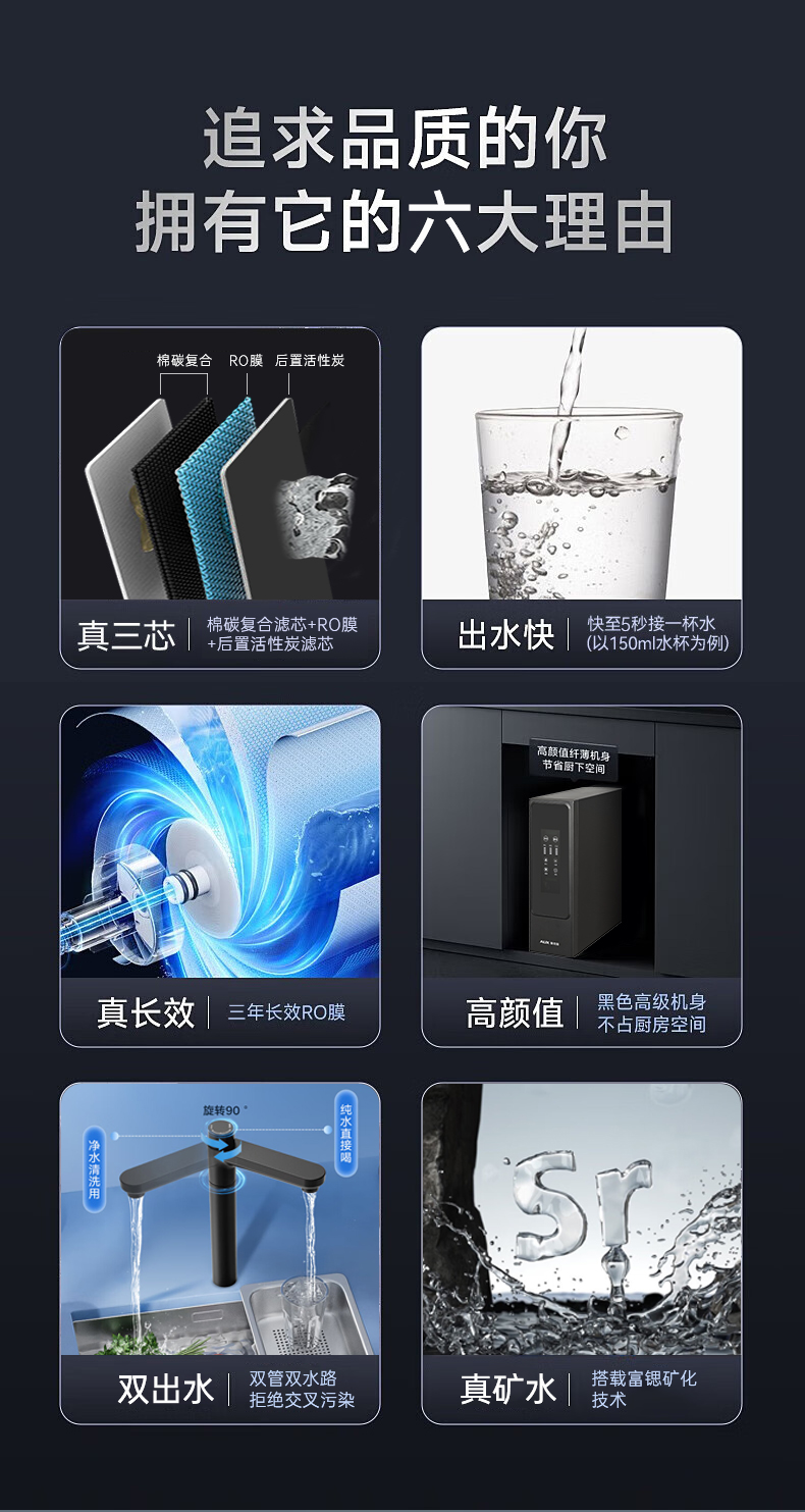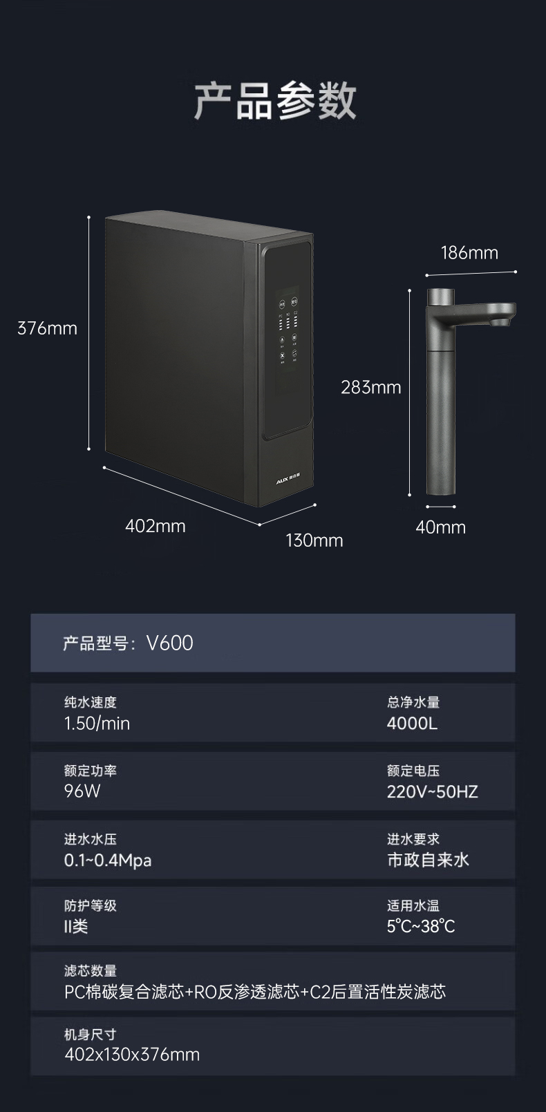 奥克斯厨下净水器大通量600G机型:V600月光灰