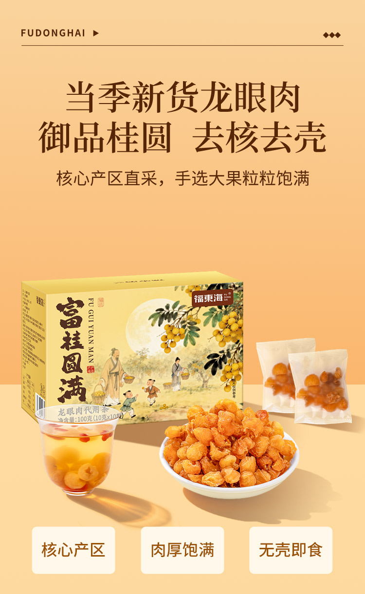 福东海 龙眼肉100g 无核免剥自然干晒 桂圆肉泡茶煲汤