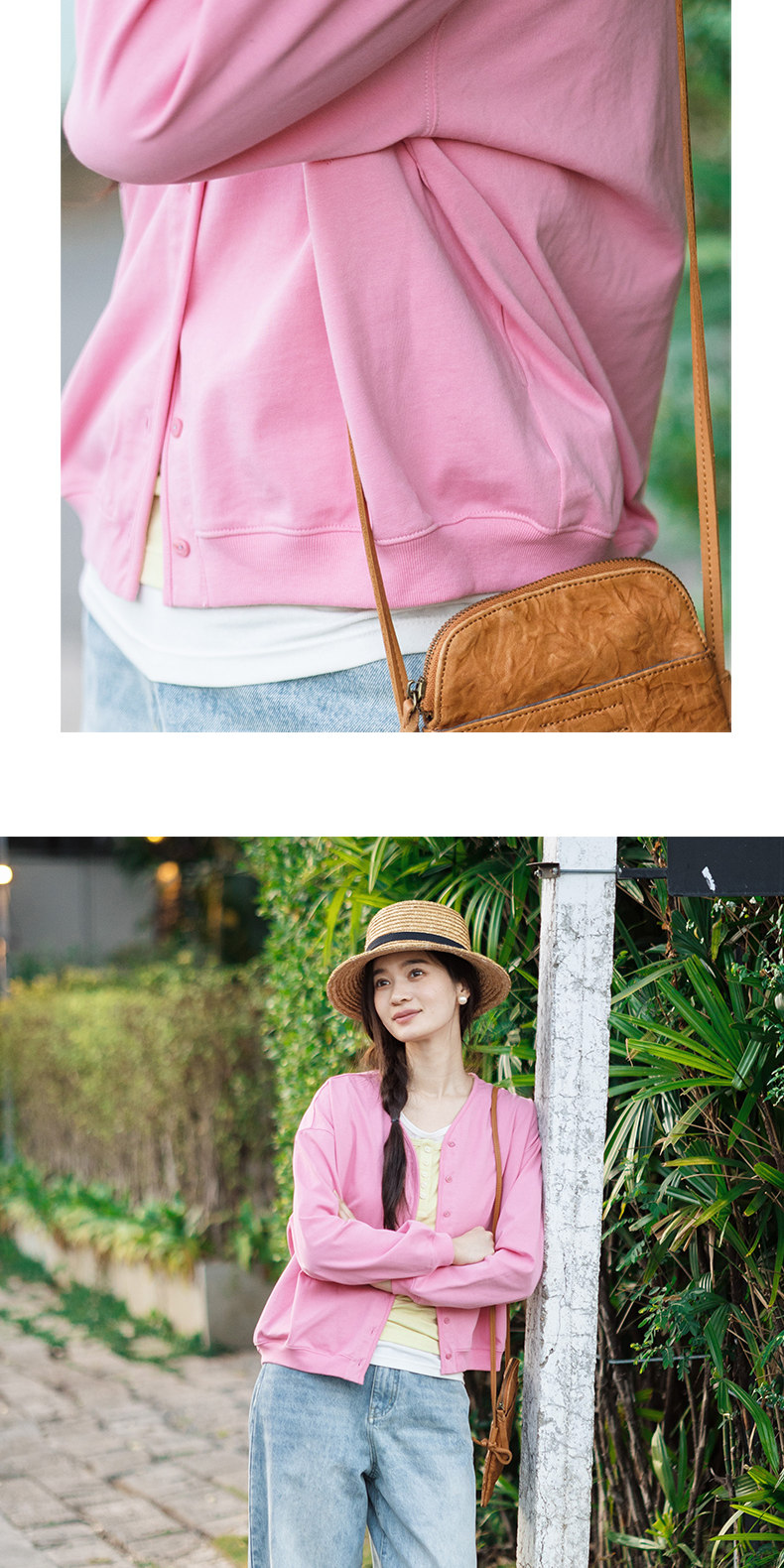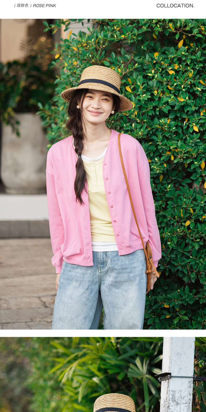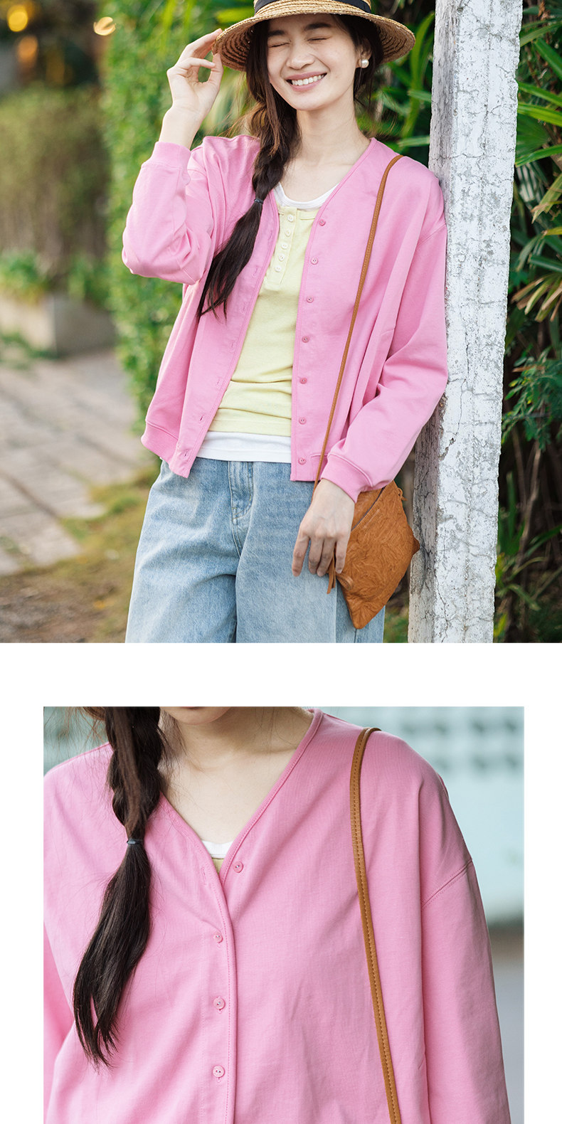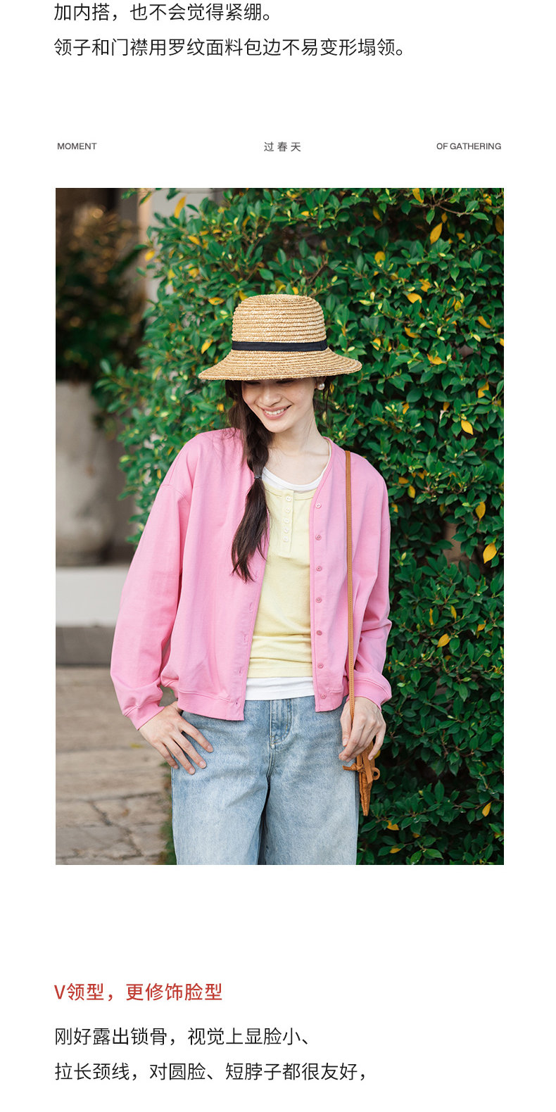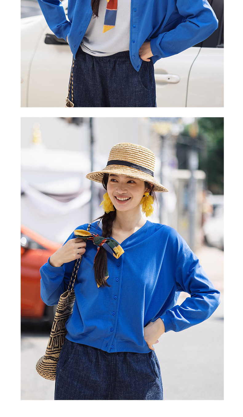 特绽放153朵/漫步经心开襟卫衣·精梳棉落肩长袖V领开衫外套女春