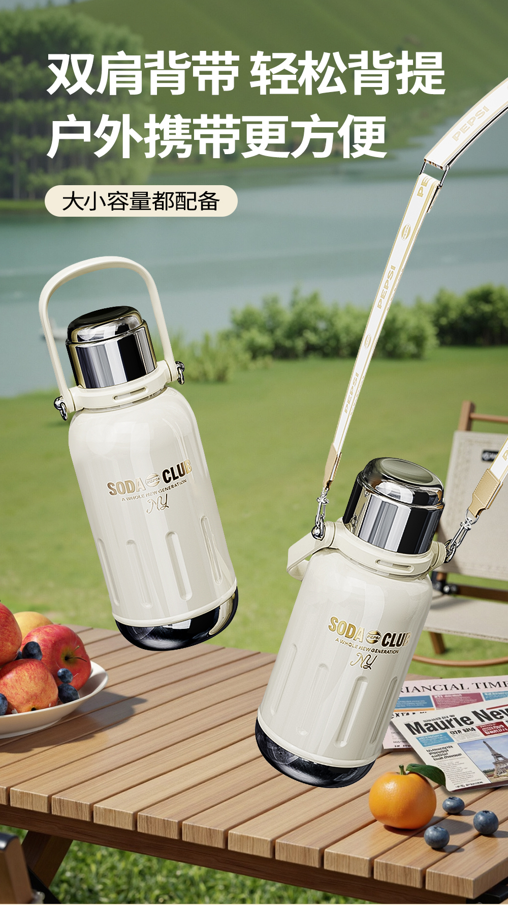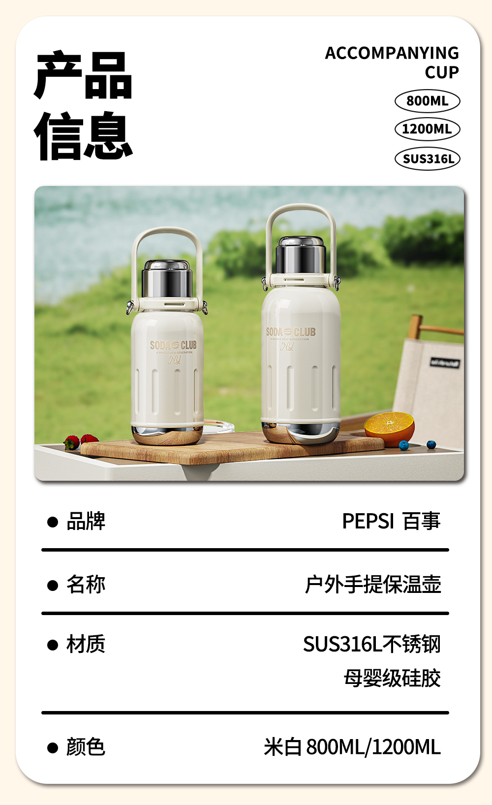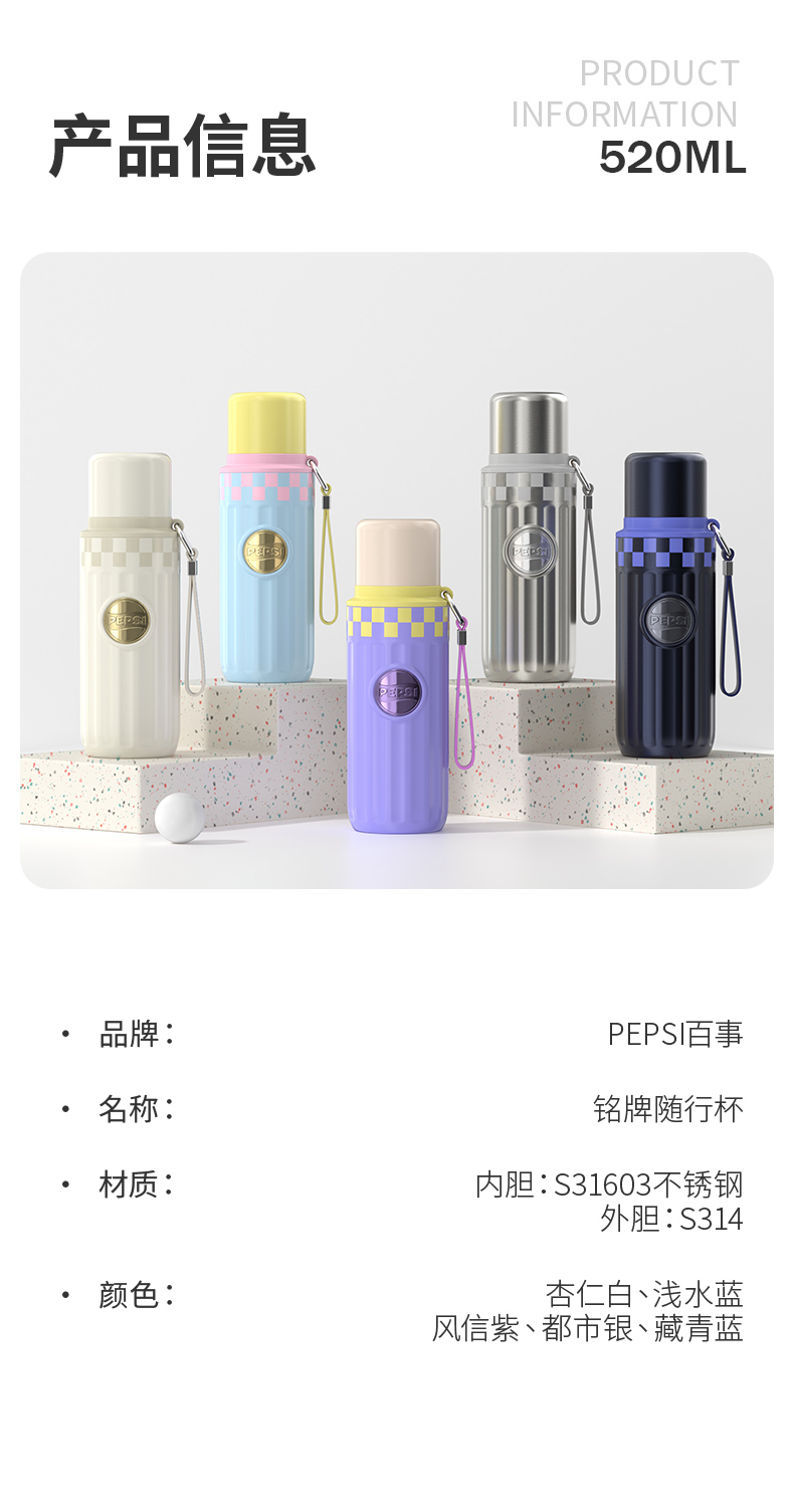 百事PEPSI 铭牌随行杯BS-S-520-025/户外手提壶 便携随行 保温保冷 316内胆