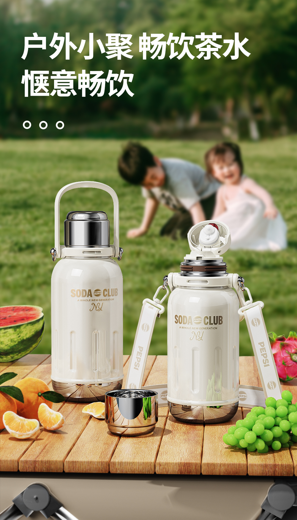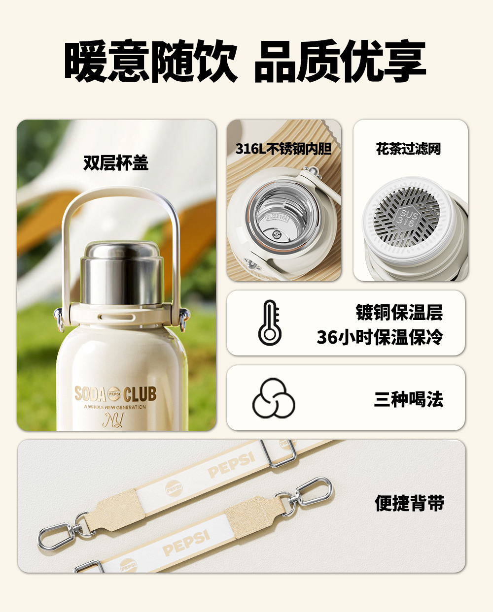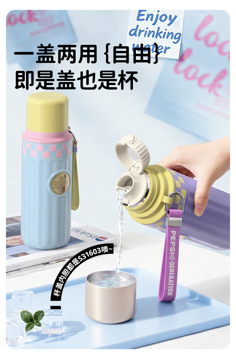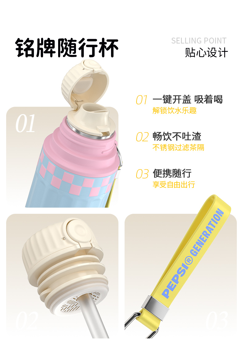 百事PEPSI 铭牌随行杯BS-S-520-025/户外手提壶 便携随行 保温保冷 316内胆