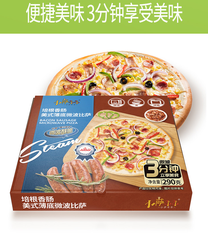 小萨牛牛培根香肠美式披萨(微波薄底)290g