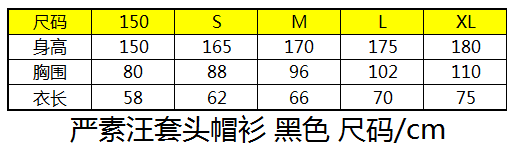 尺码建议:帽衫为纯棉材质,请参照本产品的尺码表选购。